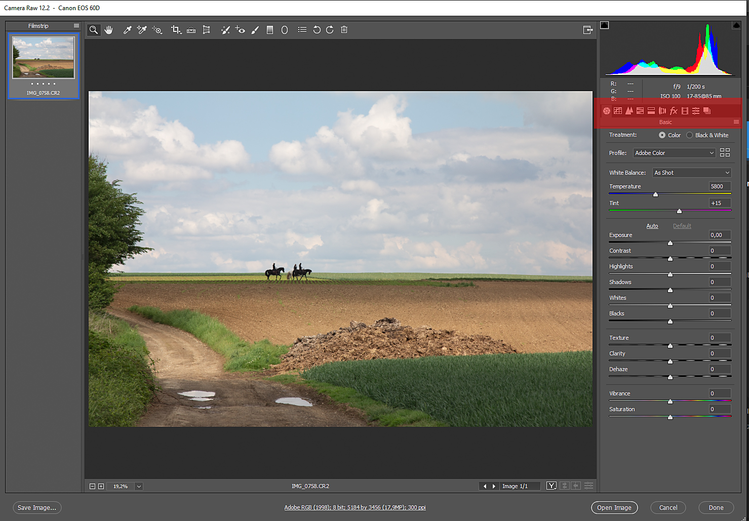 Je kunt hier al vele van je standaard correcties uitvoeren zoals het weghalen van sensorvlekken en het aanpassen van de belichting, contrast, kleurbalans en verscherping. Camera RAW was in eerste instantie ontwikkeld – en de naam zegt het al- om RAW bestanden te bewerken, maar inmiddels is het ook mogelijk om het te gebruiken bij opnames met een andere extensie zoals bijvoorbeeld Jpg en TIF.
