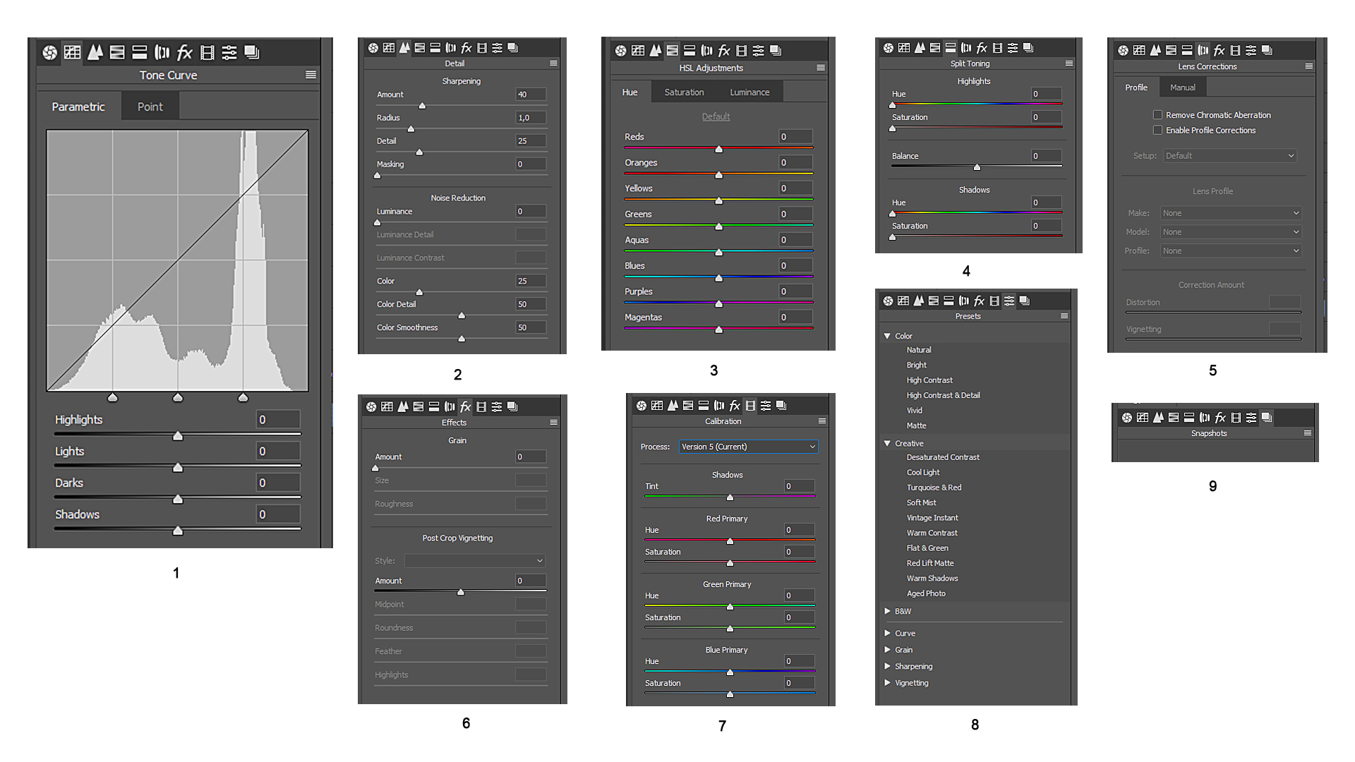 - Snapshots (moment opnames van je handelingen maken zodat deze bewaard worden na afsluiten van Camera RAW