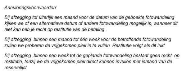 Voor deze fotowandeling vragen we een bescheiden financiële bijdrage van € 14,50 per persoon. Deze wordt gebruikt voor het in stand kunnen houden van onze prachtige site, waar we allemaal van kunnen genieten.