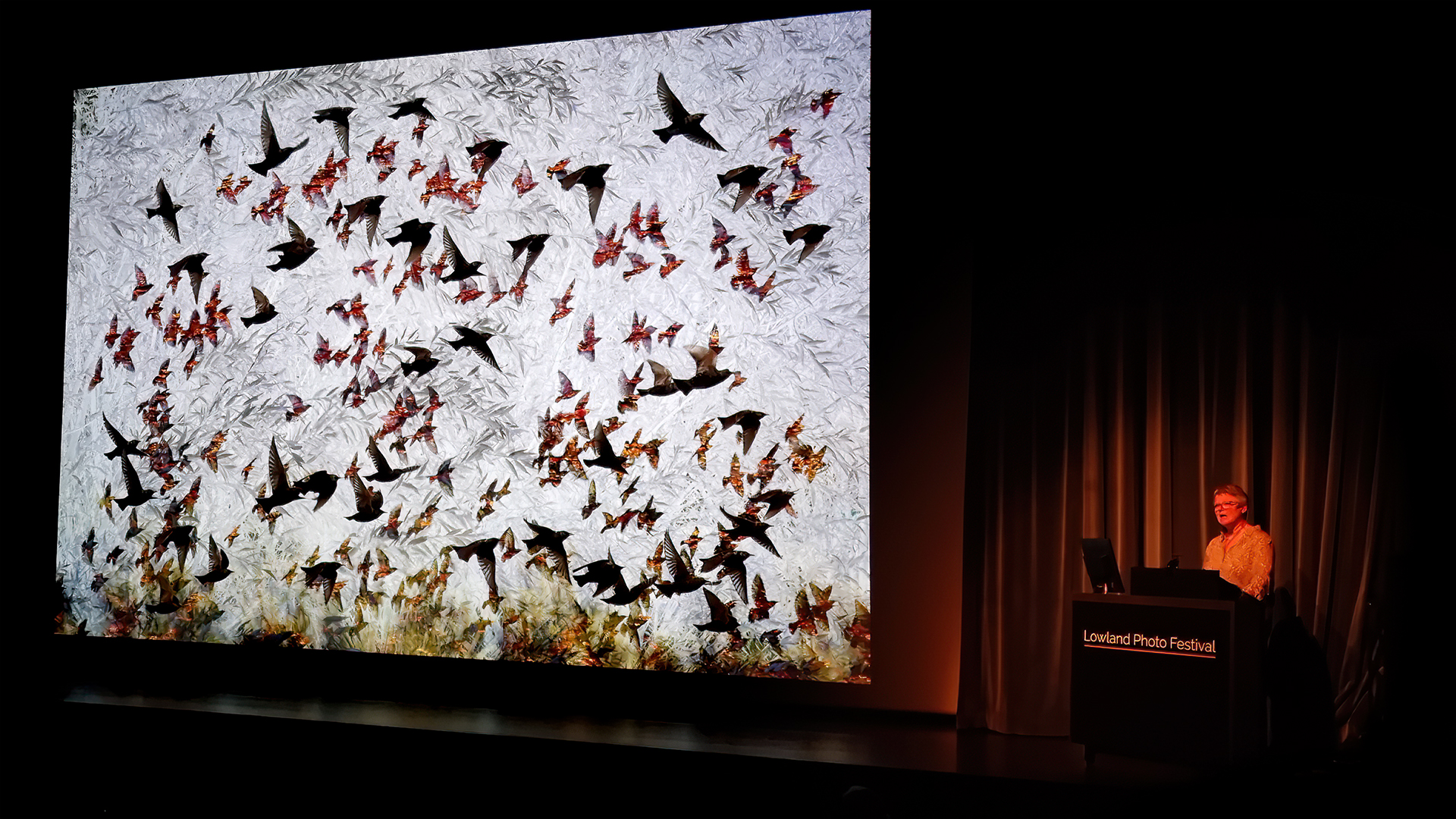 Op zaterdagmorgen was het eerst tijd voor een ander hoogtepunt! Brigitte had de eer om als enige vrouwelijke spreker de aftrap van alle lezingen in de schouwburg te mogen geven met haar presentatie "Nature as art".