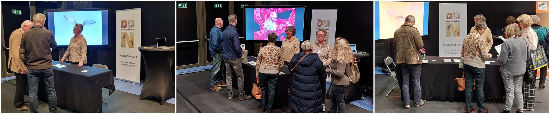 In vogelvlucht presenteerden we onze website Deeldenatuur.nl en natuurlijk introduceerden we het Team van Deel de Natuur aan de bezoekers met een mooie selectie van hun fotowerk. Hier enkele beelden, v.l.n.r.