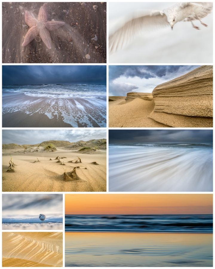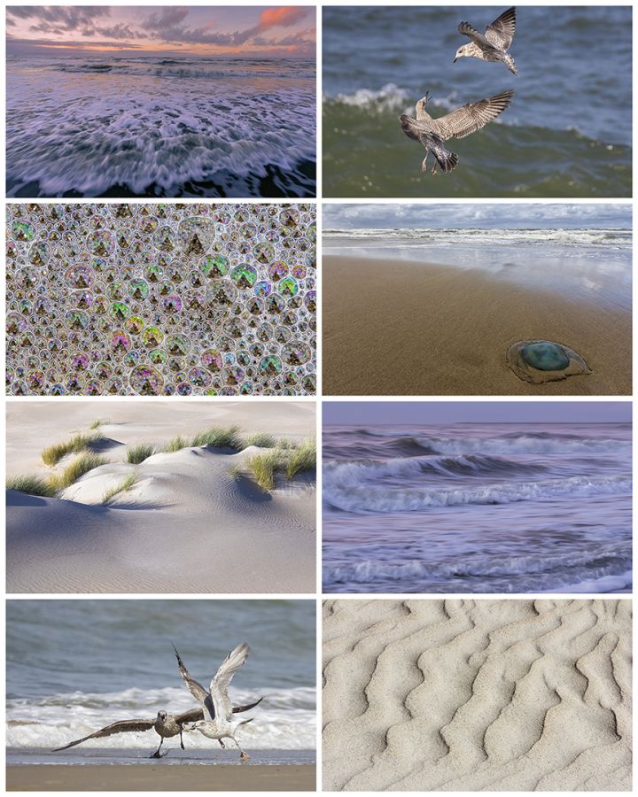 • Close ups van zandstructuren, waterbubbels, schuim, schelpen etc.