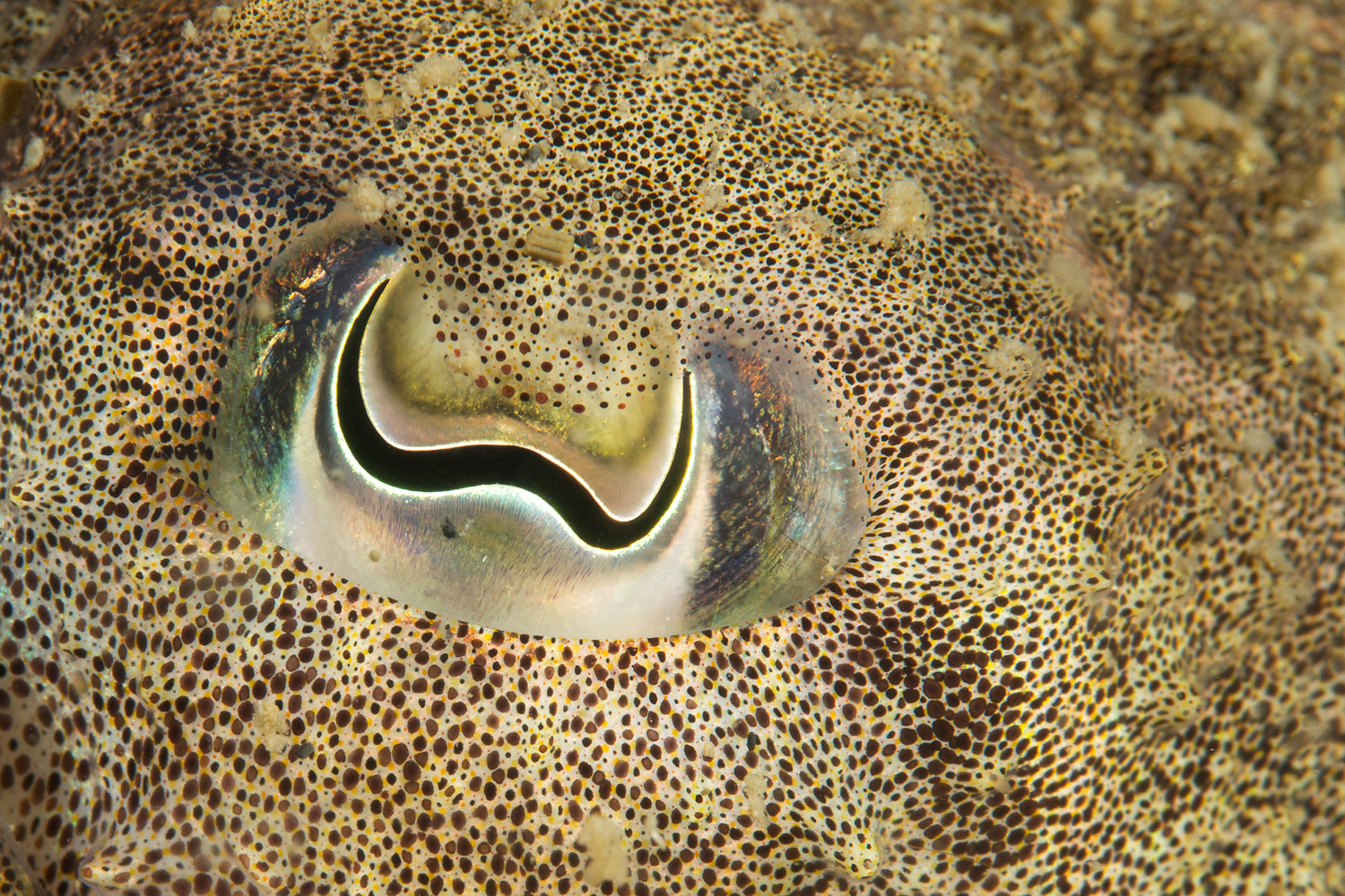 Het mooie en bijzondere oog van een sepia, een van de opvallende kenmerken.