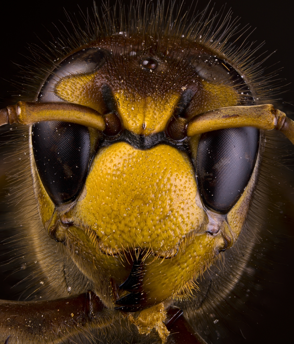 Kop van Hoornaar (Vespa Crabro). Stack van 240 opnames van 1/20s ISO 64, Nikon D850