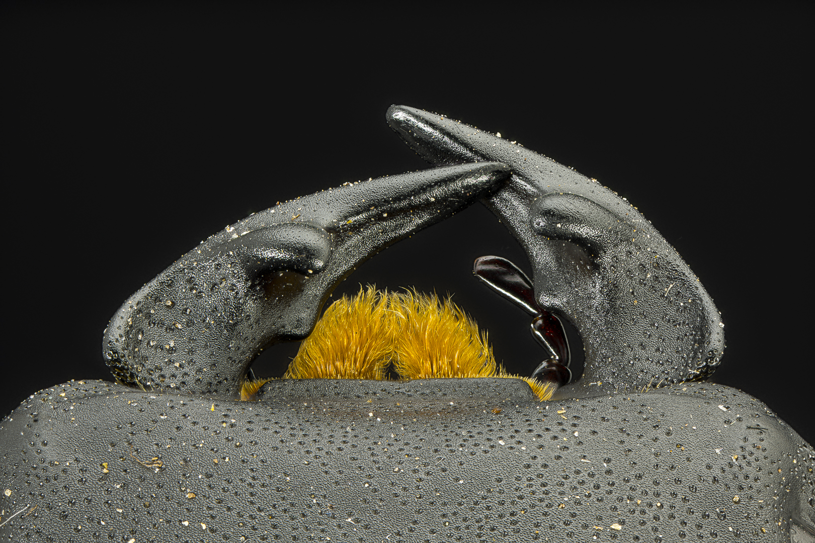 Kaken van een Klein vliegend hert (Dorcus parallelipipedus). Stack van 120 opnames van 3s ISO64, Nikon Z7II