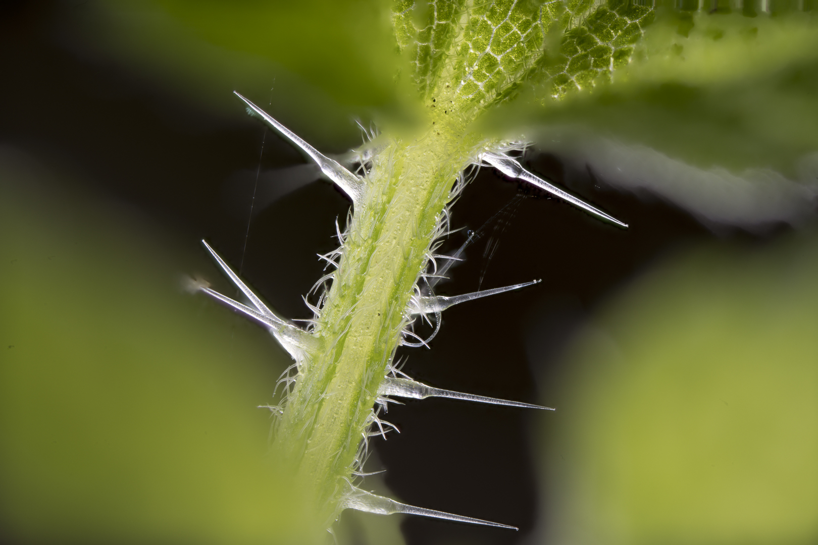 Brandharen van Grote brandnetel (Urtica Dioica). Stack van 79 opnames van 1/6s ISO 64, Nikon D850