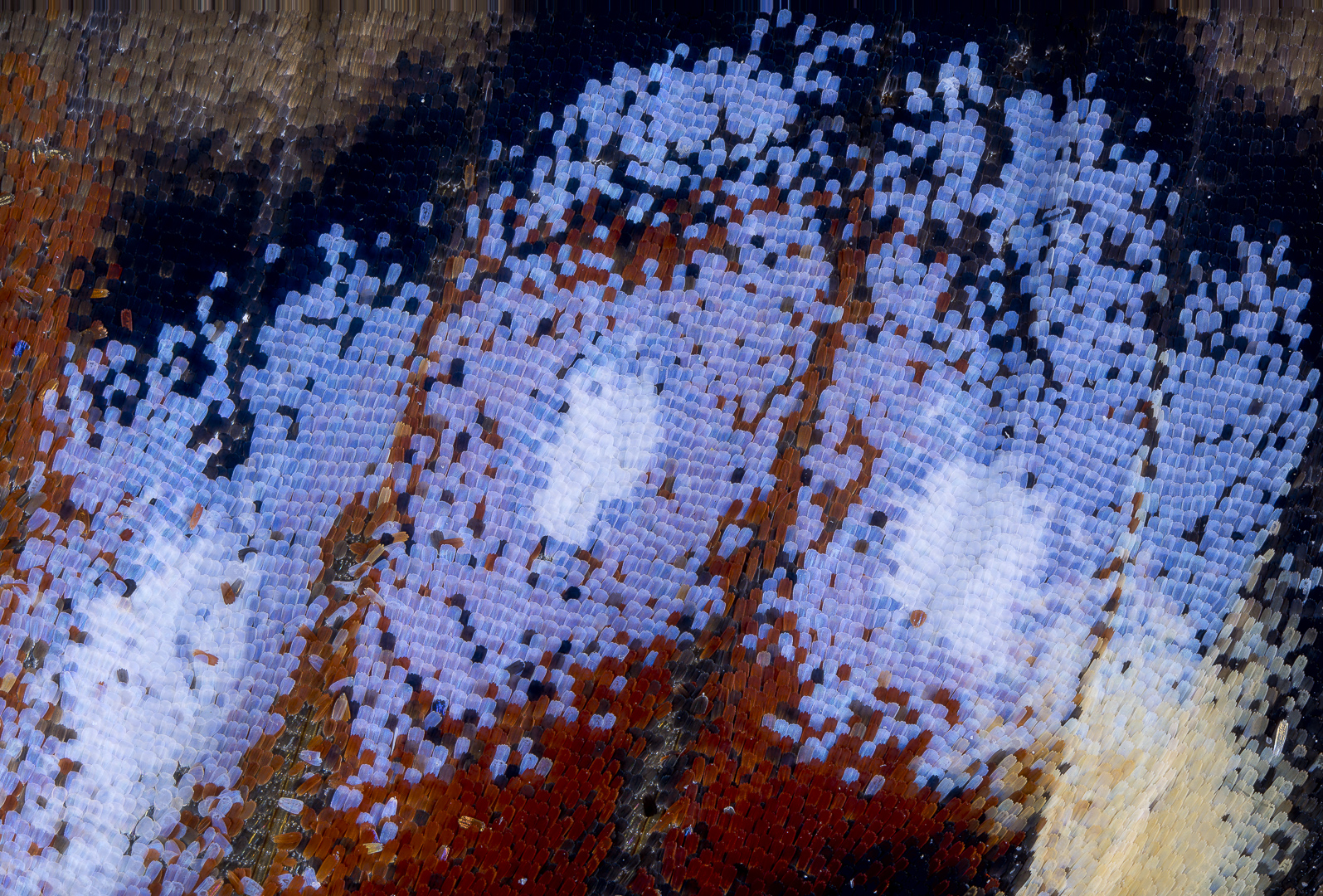 Detail vleugel Dagpauwoog (Aglais io). Stack van 140 opnames van 1/8s ISO 64 Nikon Z7II
