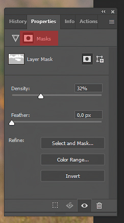 Mocht je al iets verder zijn in je kennis met Photoshop dan zou je ook nog je masker kunnen finetunen door de randen zachter te maken of te selecteren via de zogenaamde selectie tools. Deze opties vind je in hetzelfde scherm als de schuifjes van je desbetreffende aanpassing (in dit geval vibrance / levendigheid).