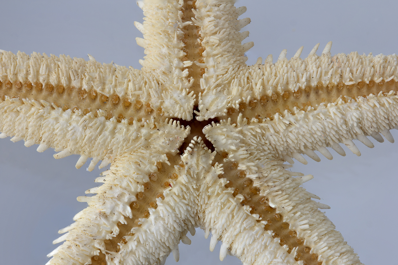 Werk je foto af zoals je dat anders ook zou doen: Pas de kleuren en de contrasten naar believen aan en werk lelijke plekjes en stofjes weg die met stacking genadeloos naar voren komen. Als je goed inzoomt op de zeester zal je ook hier nog wat haartjes en stofjes zien zitten. Let er op dat de foto geen stacking artefacten heeft. Dit zijn foutjes in de procedure van samenvoegen die lelijke onscherpe plekjes in beeld kunnen geven. Als dit zo is kun je ze nog wegpoetsen maar met grote artefacten is er simpelweg dus iets misgegaan. Bijvoorbeeld het onderwerp is bewogen of je statief stond niet stabiel.