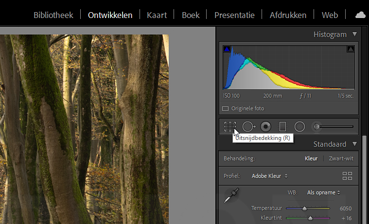 Kies het uitsnij tool (uitsnijbedekking – snel toets R)