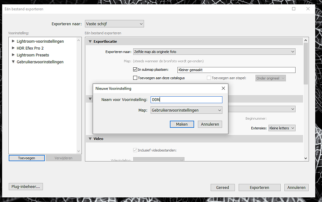Je hebt nu een script aangemaakt en zodra je kiest bij export voor de voorinstelling DDN zal de foto verkleind worden naar de ingestelde waarden bij dit script. Je hoeft deze actie dus maar eenmalig uit voeren.