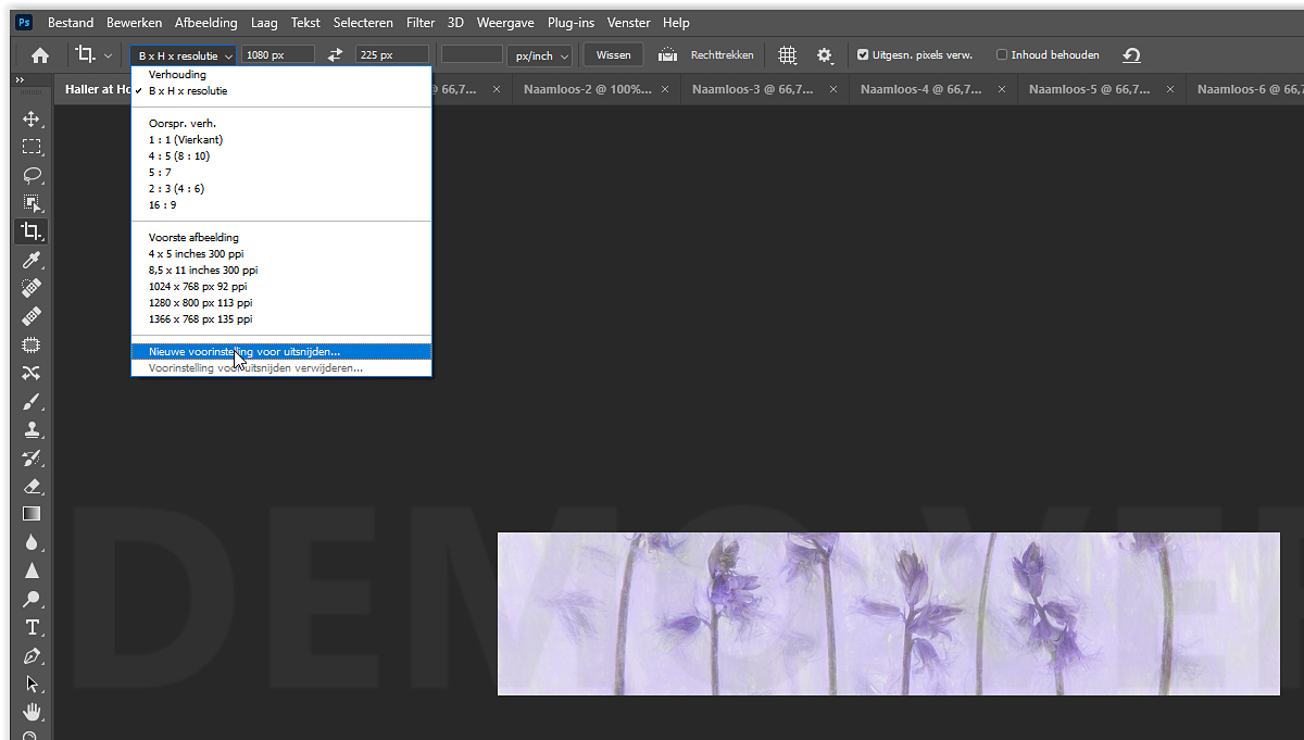 Van deze uitsnede instelling kan je teven een voorinstelling maken in PS, zodat je die elke keer gemakkelijk kan gebruiken.