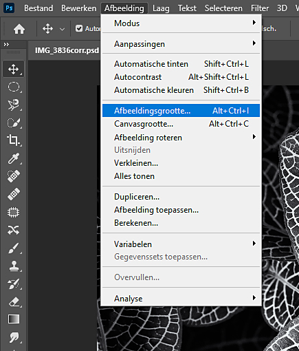 Afbeelding > Afbeeldingsgrootte