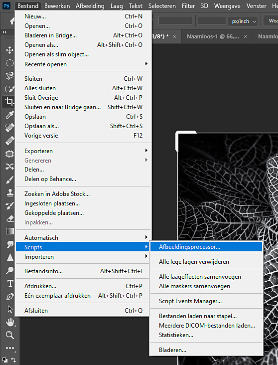 Ga naar : bestand > script > afbeeldingsprocessor