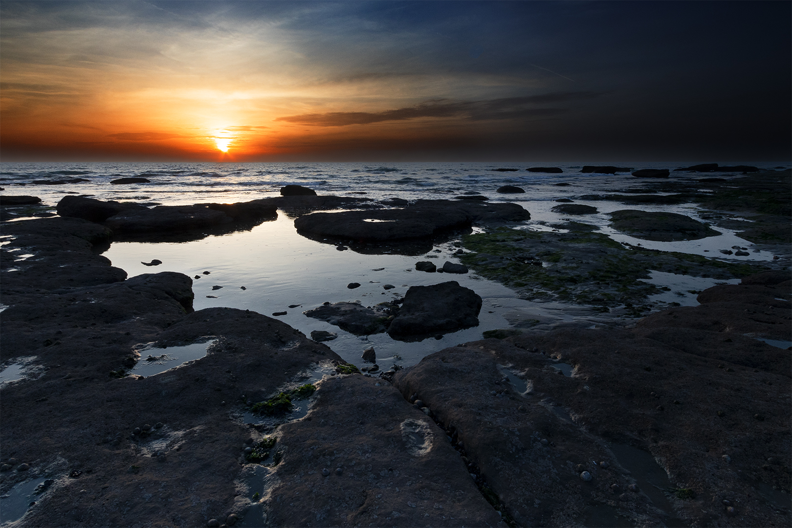 De zonsondergang viel een beetje tegen, maar als je dan een fijne voorgrond hebt met inlopende lijnen van de rotsen en het water, die je de hoofdrol kan geven door met de 16 mm te fotograferen maakt dat toch wel veel goed in het beeld. Het contrast verschil tussen rotsen en voorgrond was wel een uitdaging in de nabewerking, ondanks dat ik tijdens het maken gebruik gemaakt had van een gradueel ND filter. Misschien toch maar een “sterkere” kopen binnenkort.