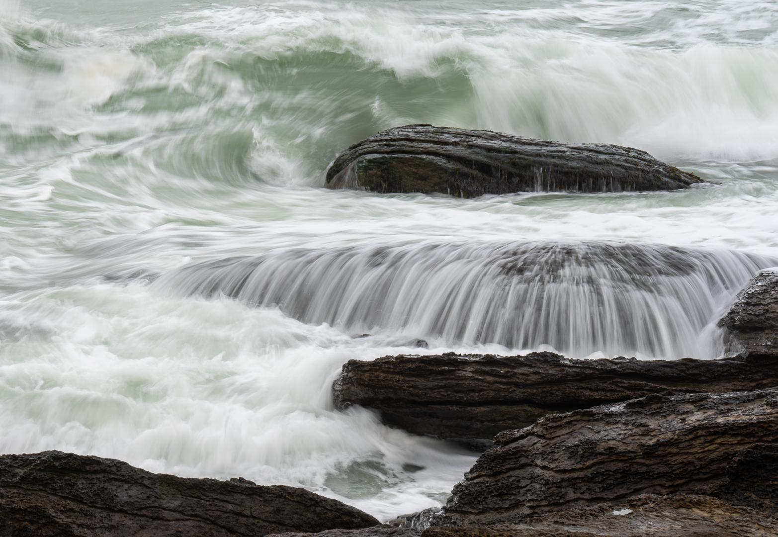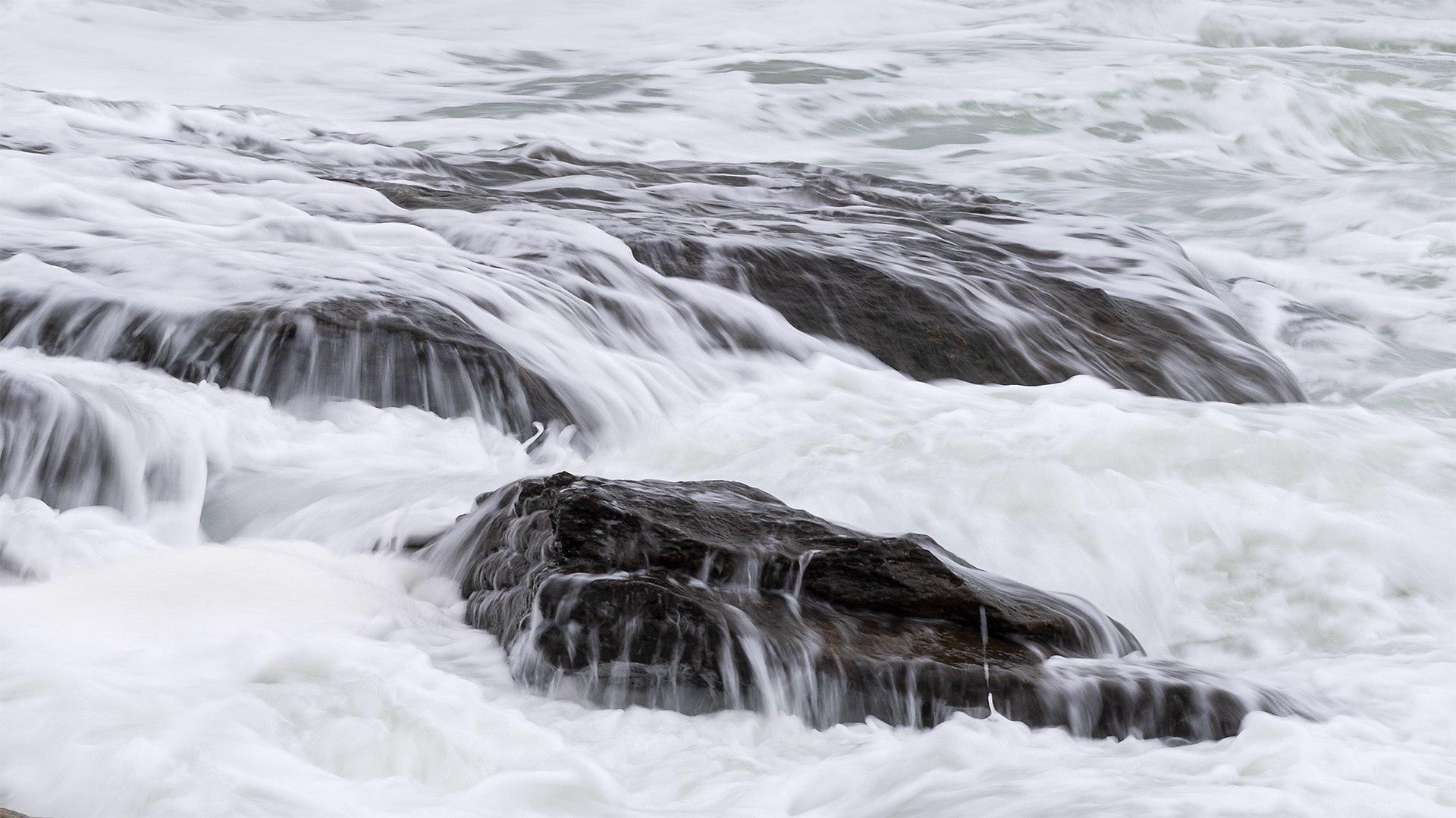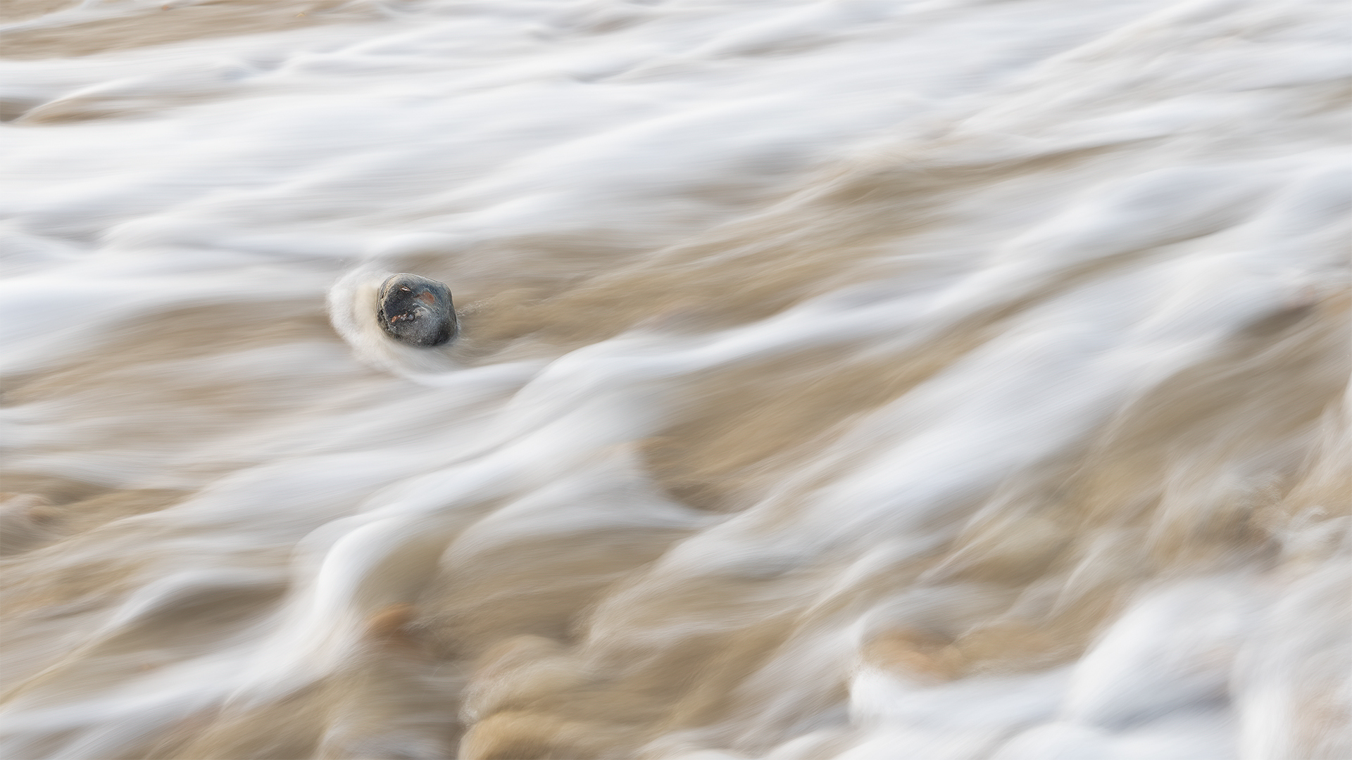 Opkomende vloed, is uitermate geschikt om stenen die op het strand liggen te fotograferen met langere sluitertijden zodat de dynamiek van het water mooi in beeld gebracht kan worden. Een statief is hier al gauw geen optie, daar dat wegzakt in het natte zand, dat continue in beweging is. Uit de hand dus, met veel trial and error, dus al snel een volle geheugenkaart en heel veel uitzoeken achteraf. Wel ondertussen oppassen dat je niet verrast word door het opkomende water dat razendsnel stijgt. 1/5 sec did the trick met een 1.5 stops overbelichting om en “fris” beeld te krijgen.