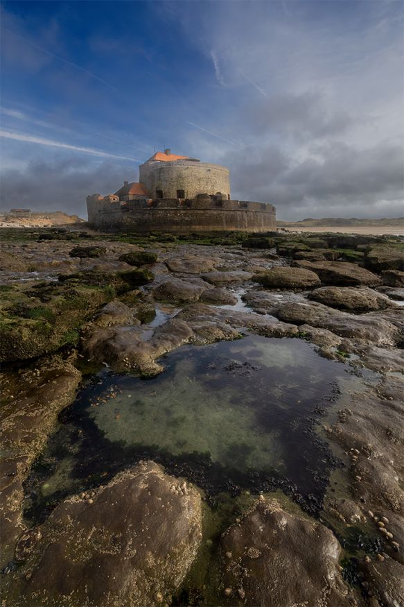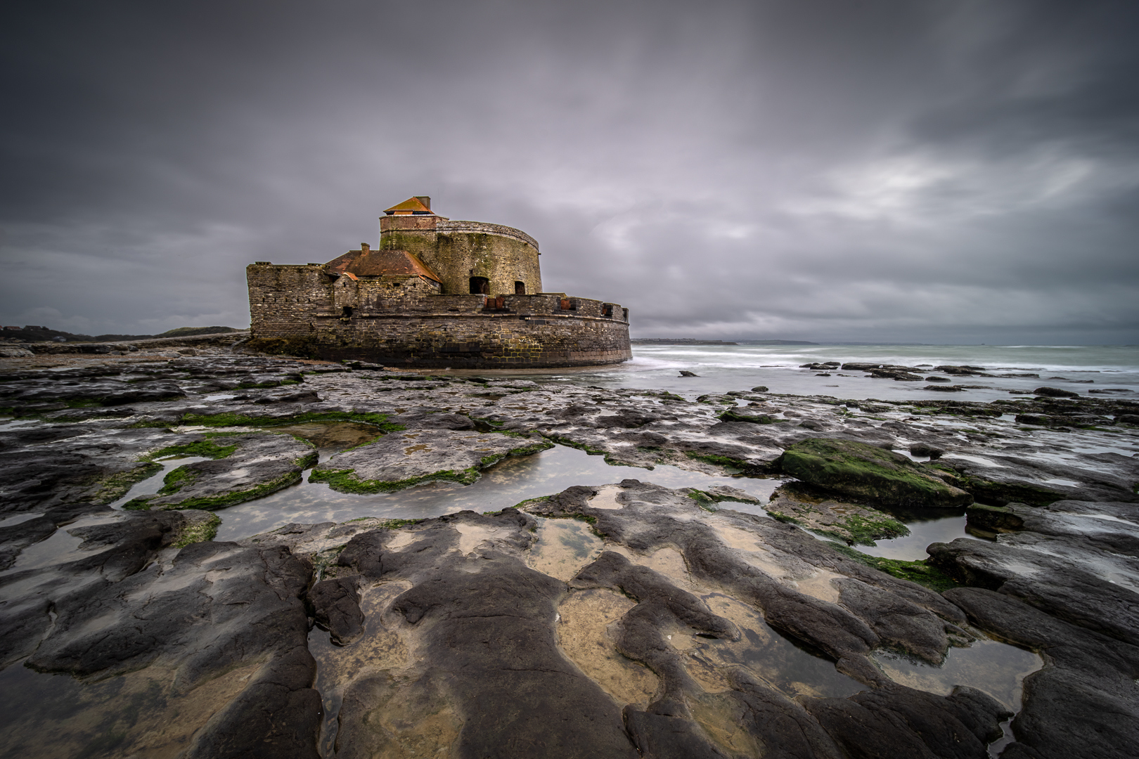 Dit fort uit de 17e eeuw (gebouwd in 1680), ligt aan de rand van het dorp Ambleteuse aan de monding van een riviertje met de naam La Slack. Je kan het ook bezoeken (het heeft een museum) en is een bekende toeristische plekpleister. Voor ons was het echter veel interessanter om het slechts een deel van ons beeld te laten vullen in een prachtig keien landschap met waterpoeltjes, wat alleen tevoorschijn komt bij volledige eb. Je moet wel enorm oppassen wat de stenen zijn met veel alg begroeid en op sommige plekken spekglad. Ook deze is gemaakt met de 16 mm groothoek.