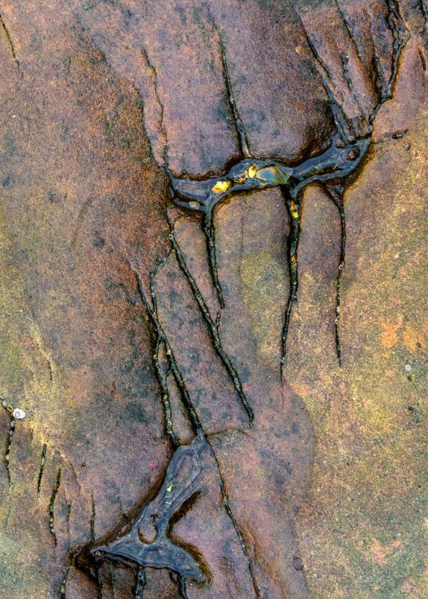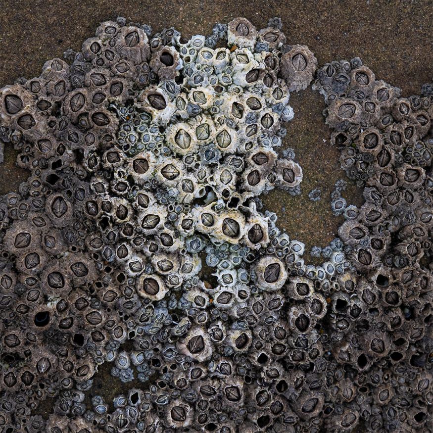 Behalve schelpen die zich vastgezogen hebben op de rotsen zijn er op sommige plekken ook pokken te vinden. Al die mooie details die als een kunstwerkje tegen elkaar aanliggen trokken me mateloos aan en ik heb ook hier veel opnames gemaakt. Het lastigste was om een goede compositie te vinden met een fijne vlakverdeling en een overall scherpte te krijgen in het beeld, want dat laatste was een must voor mij. Gemaakt op 105 mm met F/14