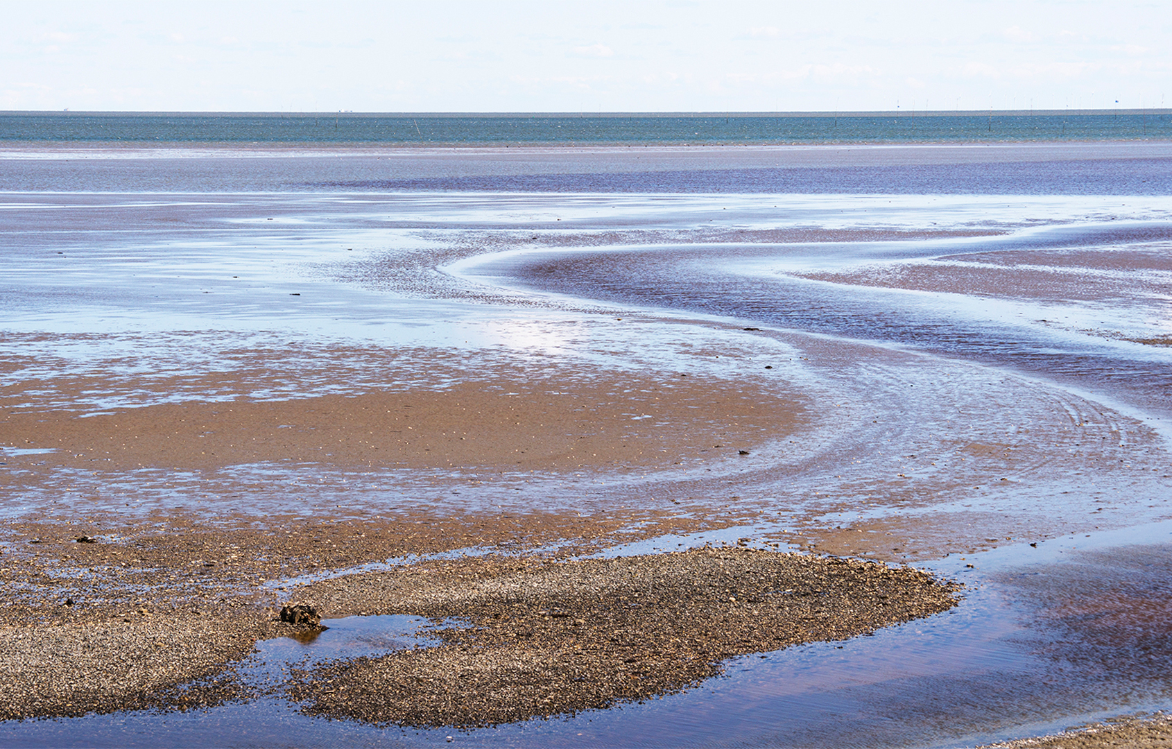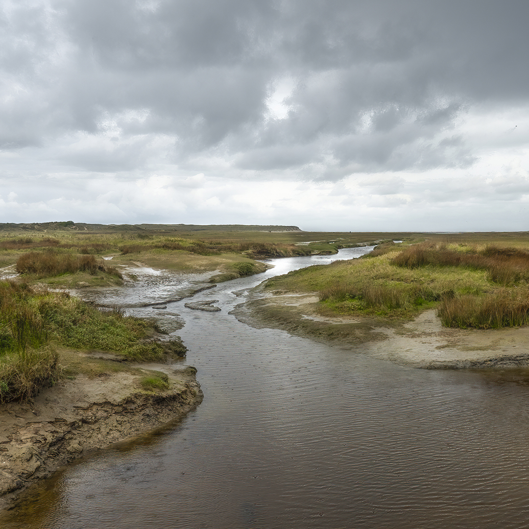 De Slufter op Texel heeft onder invloed van de getijden mooie grillige waterstroompjes die telkens weer veranderen. Het was een grijze regenachtige dag. Dat betekent dat er wel wat aan de schuifjes geschoven moest worden om wat meer kleur en lichtheid in de foto te krijgen. Ik heb hier voor een vierkante uitsnede gekozen om een wat intiemer landschap te creëren en het accent goed op de waterstroompjes te leggen.