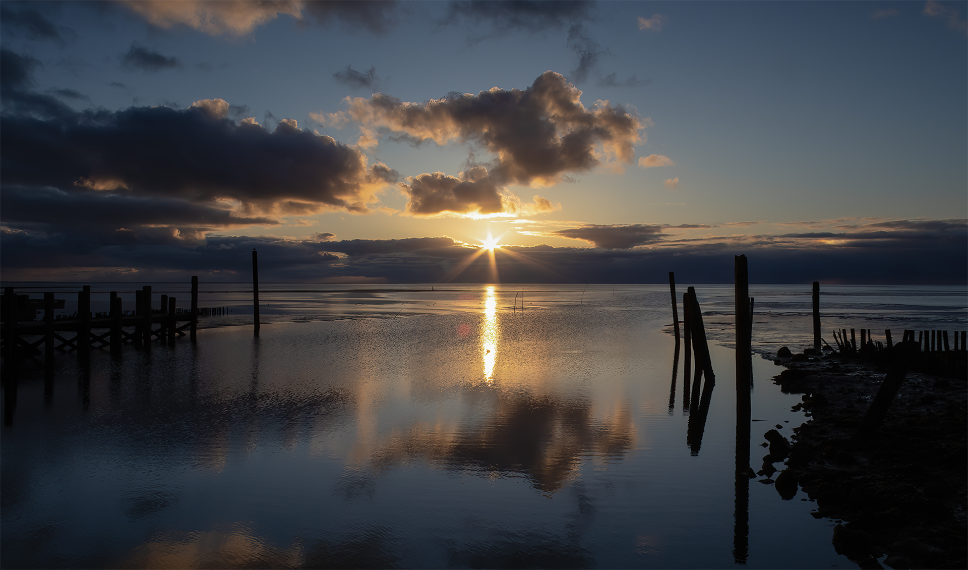 Om half vijf opgestaan voor de zonsopkomst bij het Haventje van Sil, het was onze laatste dag op het eiland dus moest het dan gebeuren. Jammer genoeg geen spectaculaire zonsopkomst maar wel de moeite waard om bij het wad de zonsopkomst te fotograferen. Hier heb ik bewust gekozen voor een klein diafragma om een sterretje in de opkomende zon te krijgen.