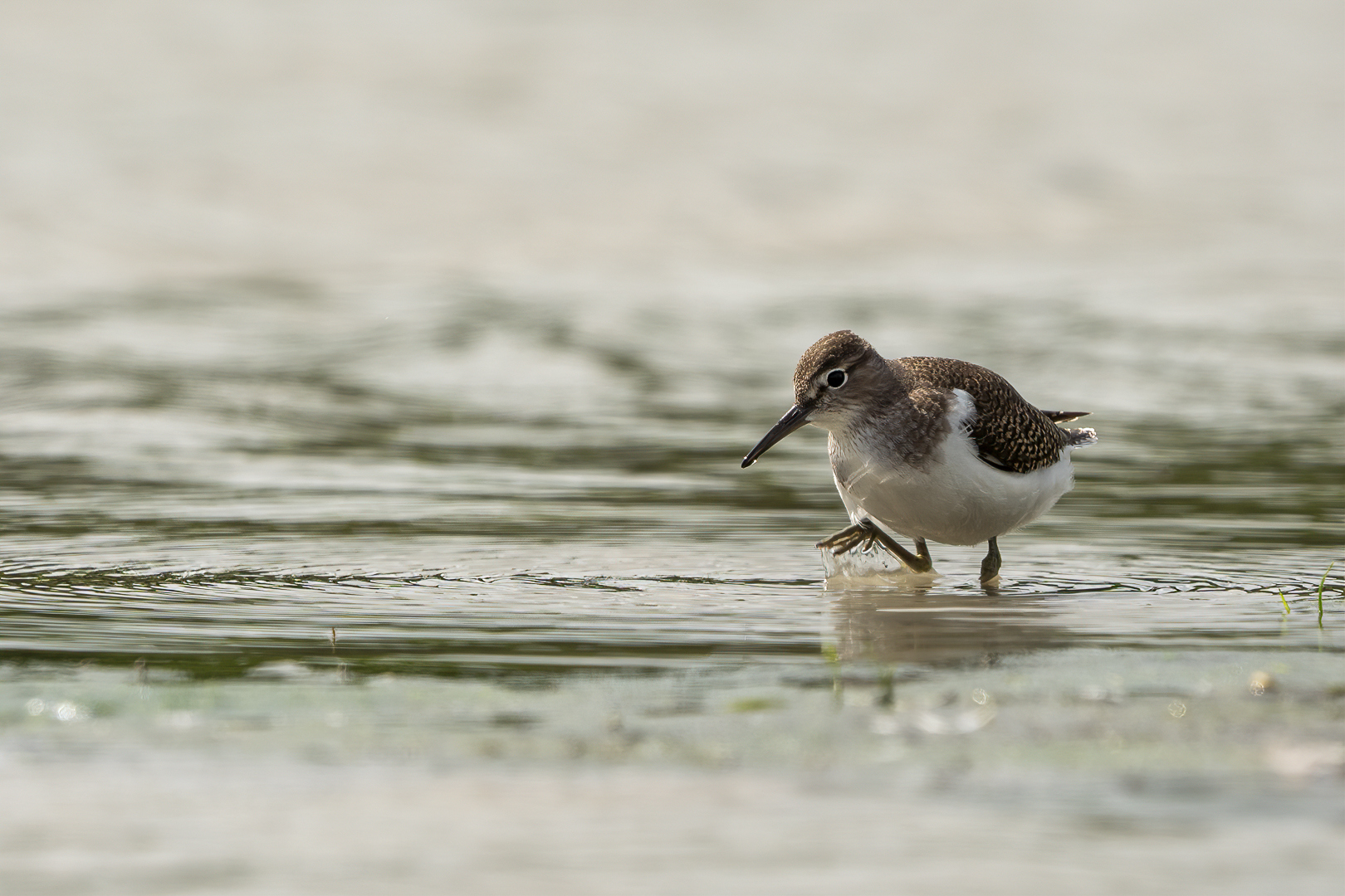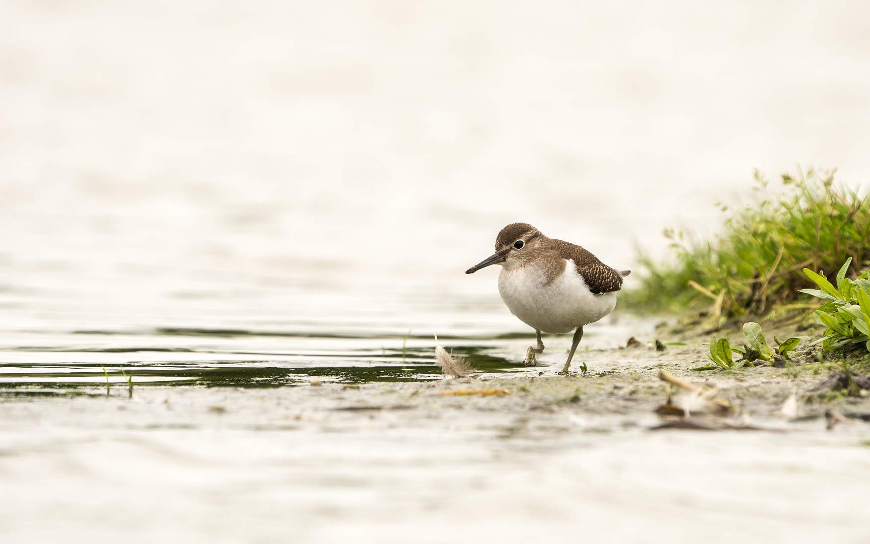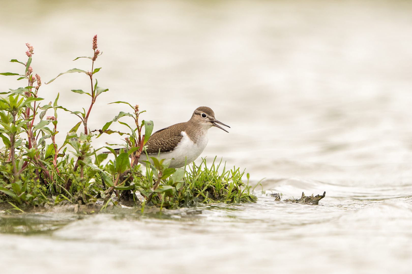 Vervolgens was het een poosje stil, totdat om een uur of 10 een oeverlopertje regelmatig even op het kleine eilandje links kwam foerageren, een fijn plekje met wat leuke begroeiing en redelijk dichtbij de hut.