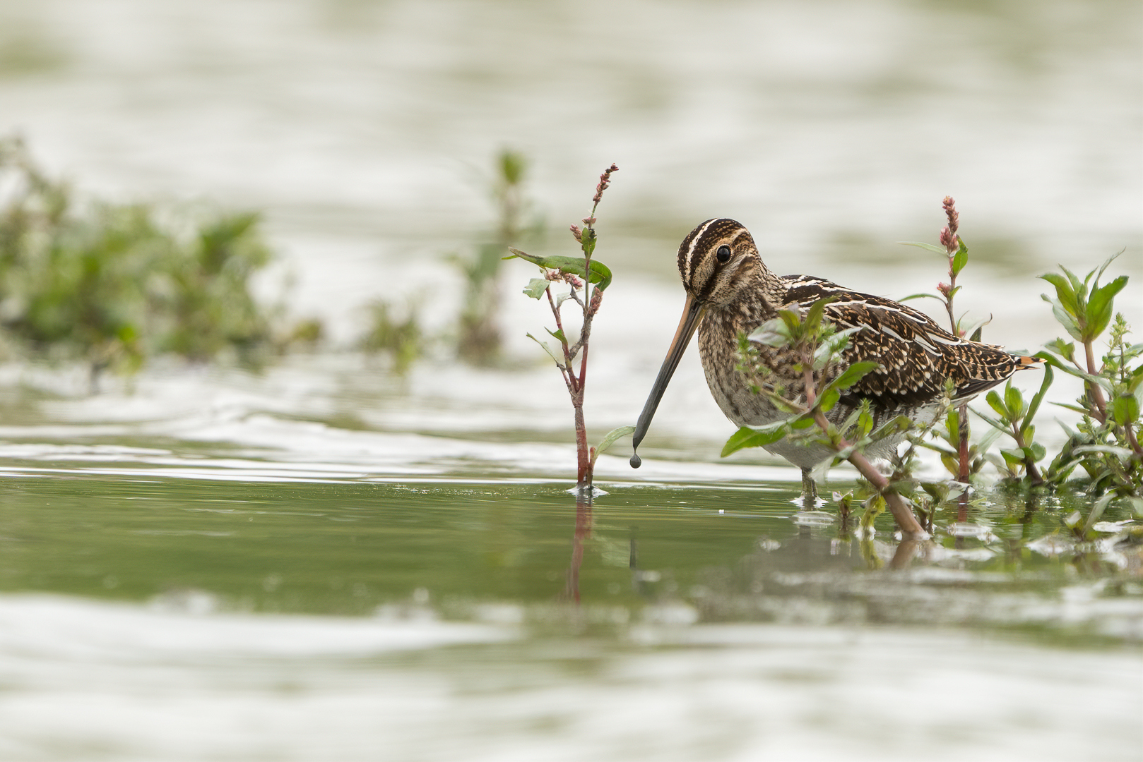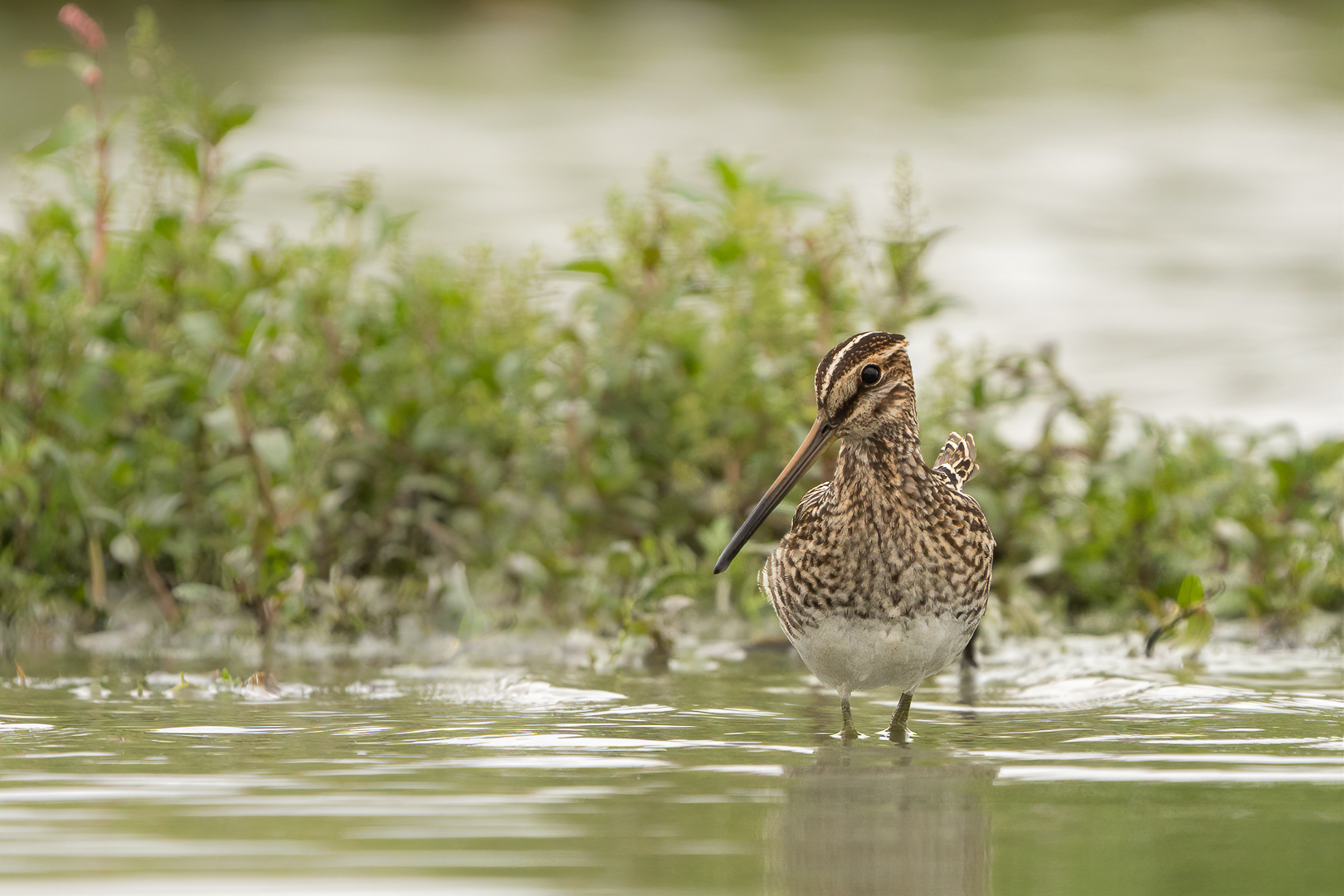 Sowieso telkens meer vogels op die plek, ook watersnippen, maar zo tegen de graskant met een rand water vind ik eigenlijk niet zo erg fotogeniek. Daarom hier meer achtergrond in beeld meegenomen.