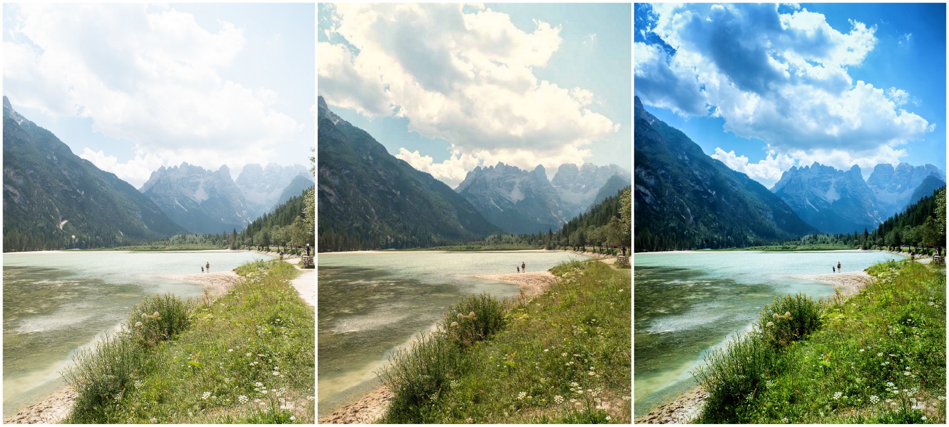 Dat gebeurde ook Ria Groot Zevert bij haar foto “Het grote geheel’, een prachtige plek met mysterieus groen water, een indrukwekkend gebergte en een heerlijke wolkenlucht. Maar in de bewerkingen die Ria ons stuurde kwam die schoonheid van het landschap niet goed tot zijn recht en Ria accepteert dan ook heel graag de hulp van andere DDN-gebruikers in onze rubriek Make-over.