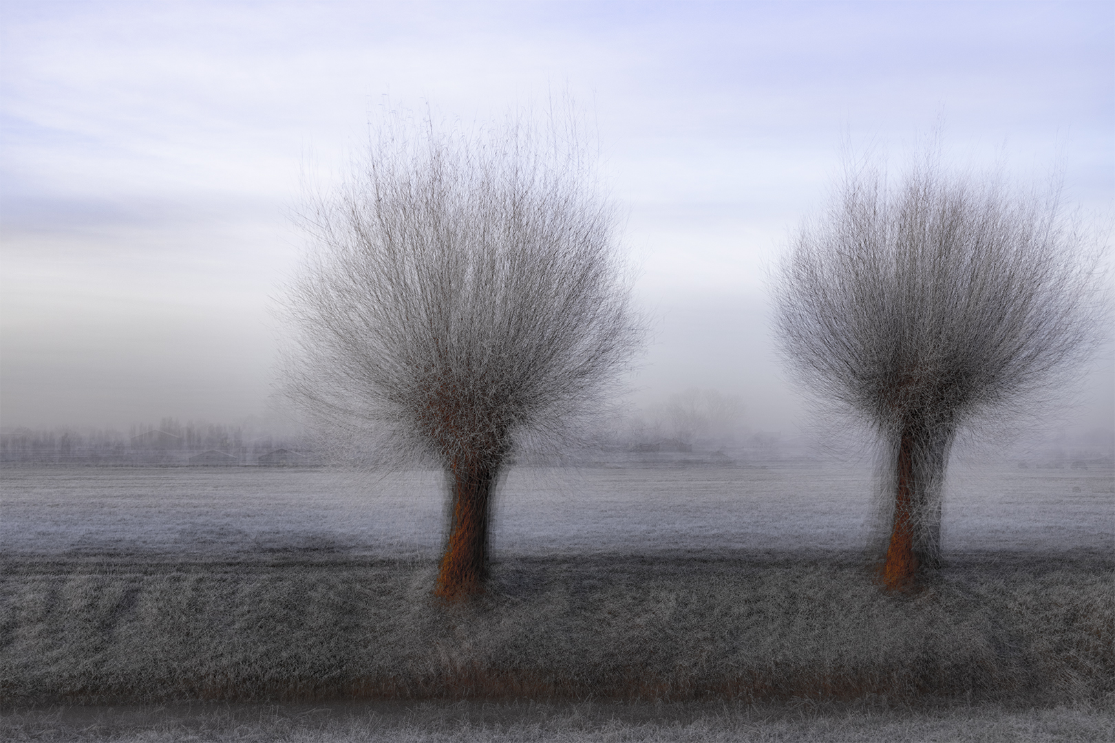 Meervoudige belichting van twee beelden in de camera op een vorstige dag – Midden Delfland