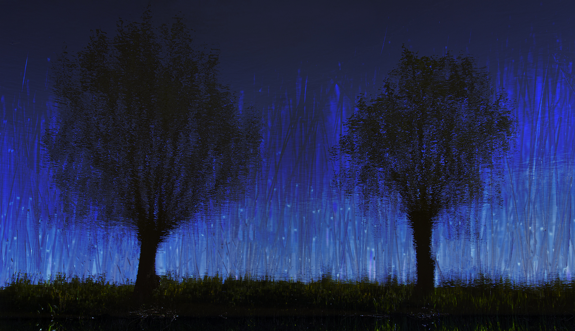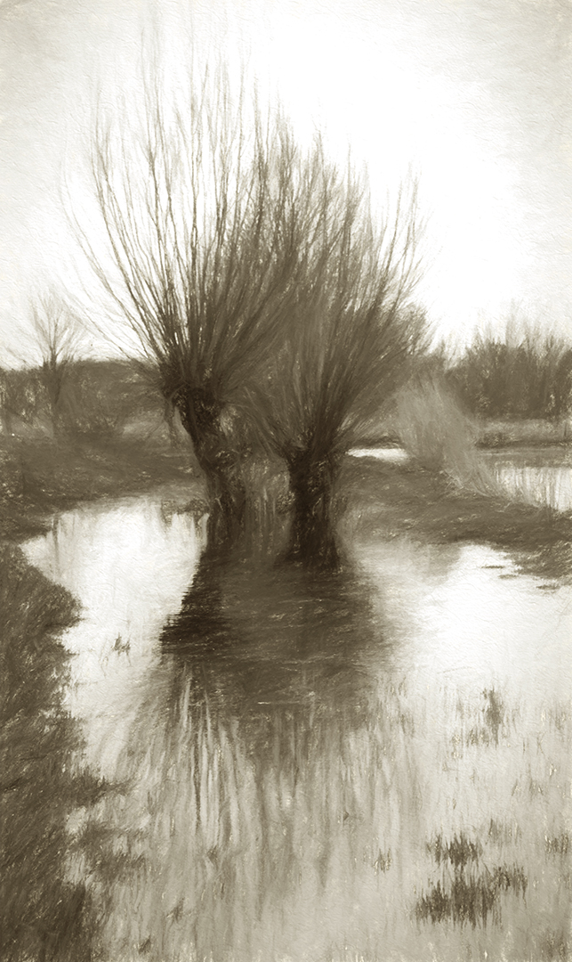 Knotwilgen langs de Vlaardingse vaart bij Vlaardingen na een week van hevige regenval – Photoshop bewerking