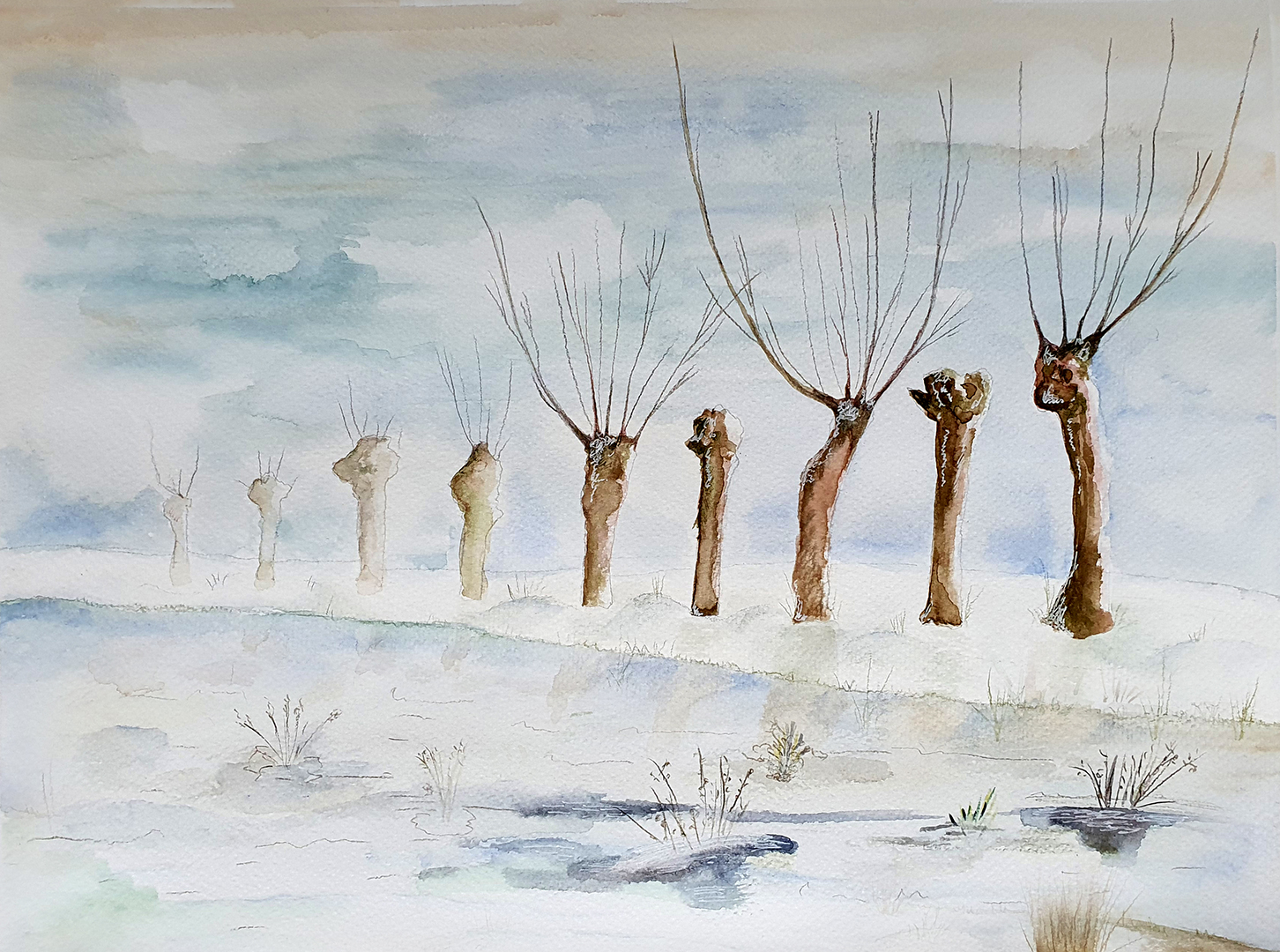 2. Wat leuk om te lezen Brigitte, en ik snap jouw fascinatie helemaal. In de Ooijpolder staan ook best veel knotwilgen die ik ook vaker heb gefotografeerd. De ICM foto's die jij maakt vind ik schitterend en je aquarel mag er ook zijn. Dankjewel voor het delen!