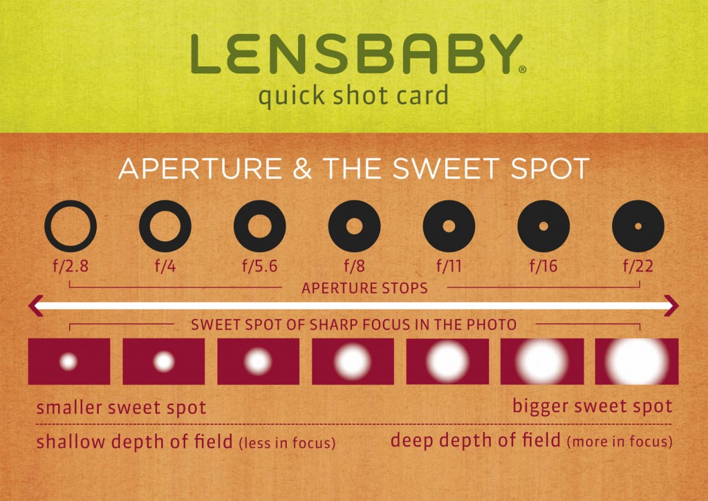 De objectieven kunnen zowel op een full frame als op een crop camera gebruikt worden. Let wel op dat bij een crop camera (zoals ik gebruik) er nog een vergrotings factor voor het aantal mm’s bij komt. De objectieven zijn tevens handmatig en communiceren dus niet met de camera. Scherpstellen zal dus ook manueel moeten gebeuren. Beide lenzen hebben een zogenaamde sweet spot. Dit is een cirkelvormig scherpte gebied dat in het midden van het beeld zit als de composer II niet verdraaid wordt. Deze sweet spot is het kleinst bij een groot diaframa opening (F2.5) en wordt groter naarmate er meer gediafragmeerd wordt. Onderstaande afbeelding (bron Lensbaby.com) laat dit goed zien.