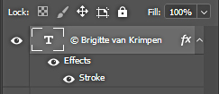 Hierna klik je op OK en is je tekst klaar. In het lagen pallet zie je nu het volgende beeld Mocht je niet tevreden zijn kan je dubbel klikken (L) op het effect dat verbonden is aan je tekst laag en kom je weer vanzelf in het aanpassingsmenu.