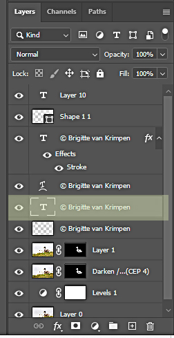 Mijn persoonlijke keuze is echter om mijn logo per foto aan te maken met het gereedschap Type / Tekst. Het voordeel hiervan is dat je het logo gemakkelijk aan kunt passen aan de resolutie van je foto en er geen kwaliteitsverlies plaatsvindt van de tekst. Ook hier zal je werken met verschillende lagen zodat het goed is aan de rechterkant van je werkblad in Photoshop het paneel Lagen open te zetten (staat standaard open in de werkruimte Fotografie).
