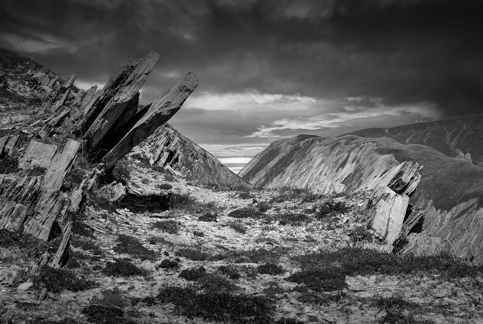 - Schaduwen, met name tussen de rotspieken rechts, wat opgelicht, omdat ik ze nogal zwart vond.