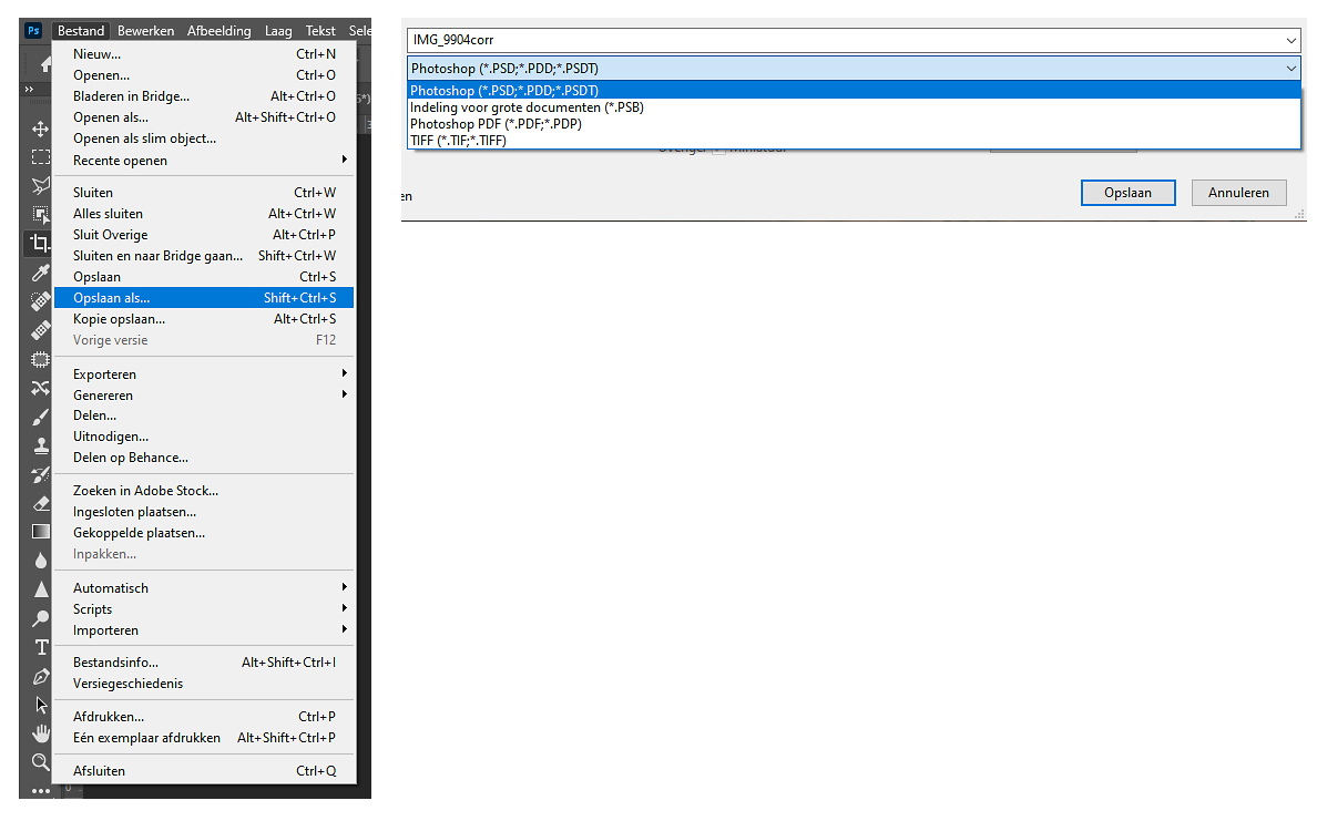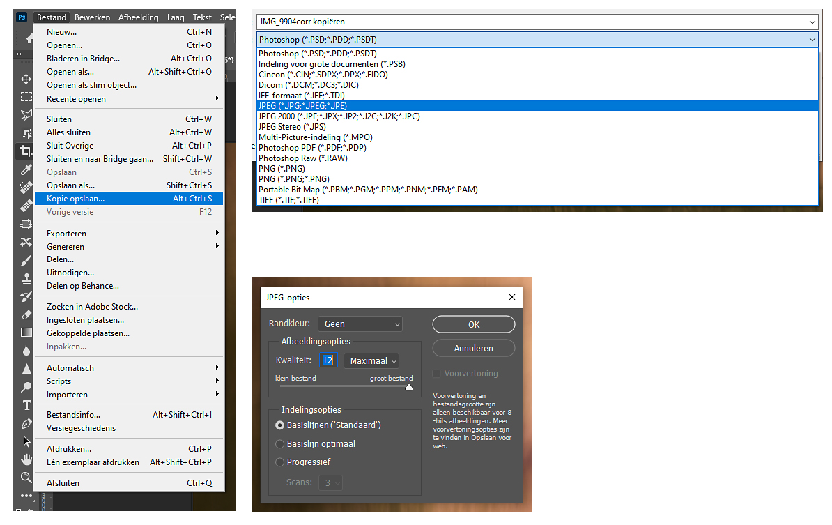 Digitale doka 11 - Opslaan in Jpg na update Photoshop 22.4.2 mei 2021