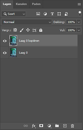 • Maak met de sneltoets Ctrl J een copy van je laag (mits je al meerdere lagen hebt gebruikt, voeg deze dan eerst samen).
