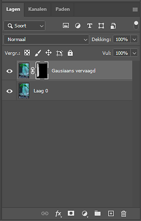 • Maak nu een masker op deze vervaagde laag door in de onderbalk op het masker icoon te drukken (Geel gehighlight)