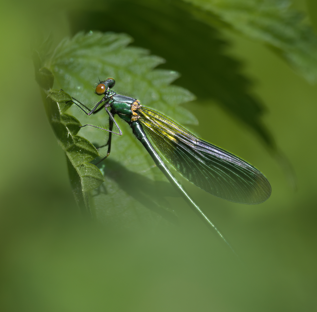 Al vaak gefotografeerd deze soort, maat als ik een mooie tegenkom kan ik het toch niet laten. Bij deze vond ik vooral de bladeren in de achtergrond wel een mooie toevoeging en ook de parasietjes aan de bovenkant.