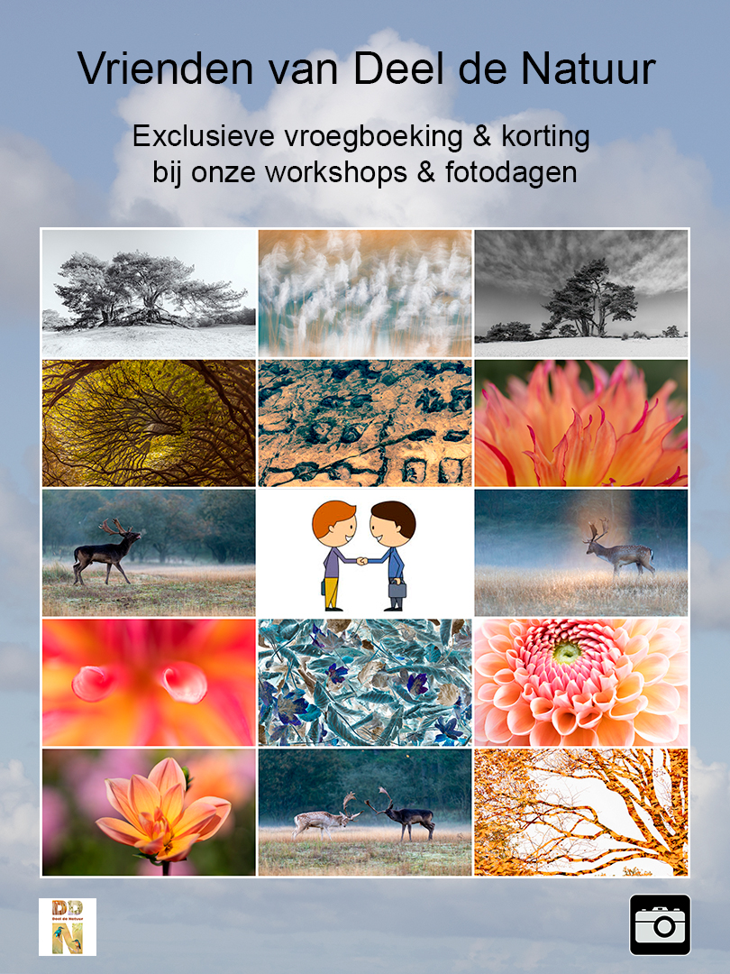 "Vrienden van Deel de Natuur"  steunen de Stichting Deel de Natuur en genieten daarom als dank diverse voordelen: