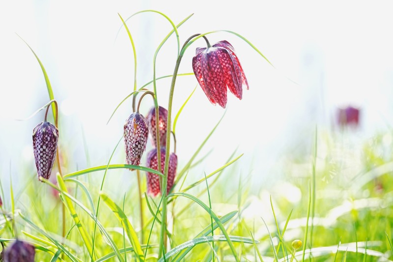 Akelei in avondsetting. Fantasy art. Gefotografeerd met de vintage Helios lensje. Tegenstrijdigheid: scherp, onscherp