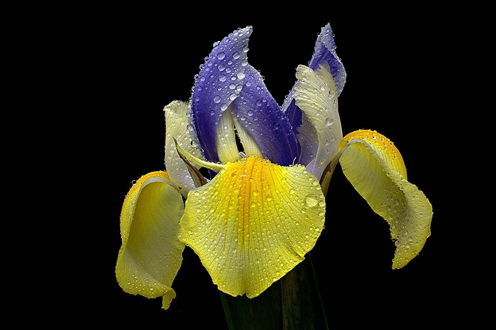 Een kleurrijk blad, waarschijnlijk van een krentenboom. Meegenomen naar huis en gefotografeerd in tegenlicht met zwarte achtergrond. Vervolgens gespiegeld met zichzelf. Hoop dat het zo wel goed genoeg is.