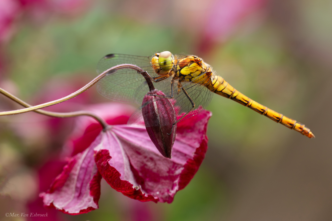 Deze Libelle zat in mijn ogen op een wel heel mooi plekkie te zonnen.