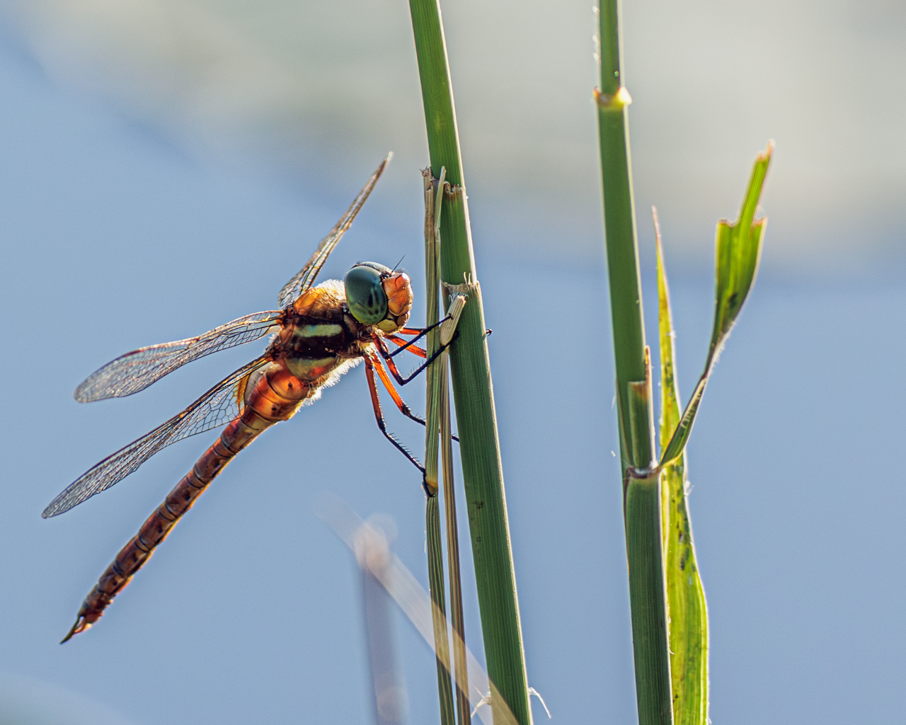 Ik was met mijn telelens libellen aan het fotograferen omdat ze te ver weg bleven voor de macrolens, totdat er een vlakbij me ging zitten. Toen hij er na bijna 10 minuten nog steeds zat, mijn macrolens weer op de camera gezet en deze foto gemaakt.