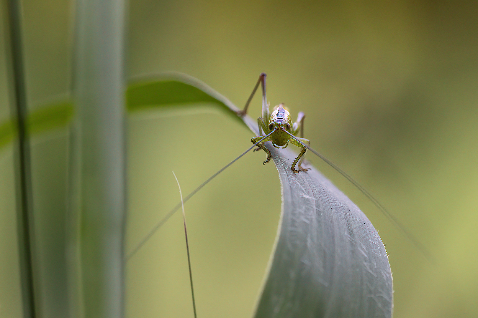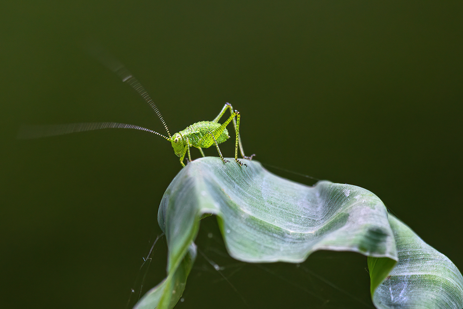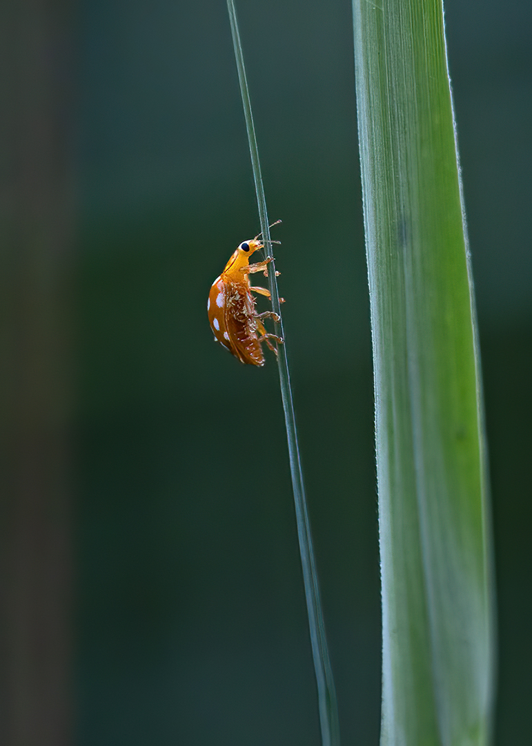 Een eikenblad op de grond, daarin een plasje water, daarop liep dit kleine wezentje een beetje te doen wat je zoal doet als je op het water loopt.