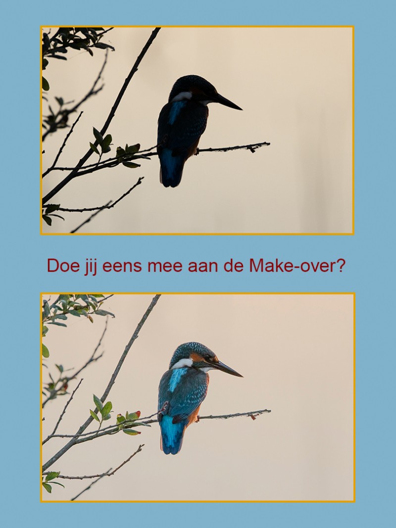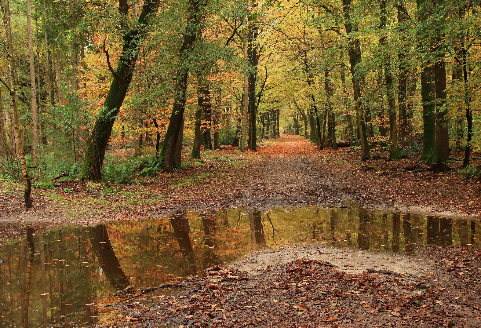 Het was mistig in de ochtend op het Leersumse veld. Nog steeds staat er veel water in de vennen. Deze drie boompjes met spiegeling passen in het maandthema. Duidelijk is te zien dat alle dennenbomen inmiddels bruin verkleuren doordat ze te lang in het water staan.