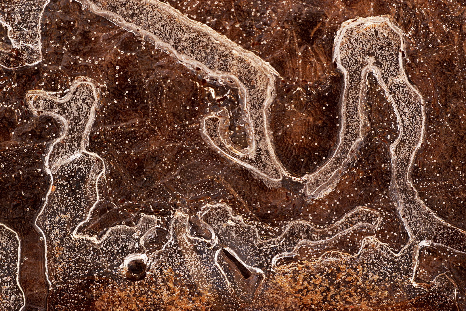 De harde wind had de losse sneeuw weggeblazen en in de onderliggende verijsde laag mooie patronen gemaakt.