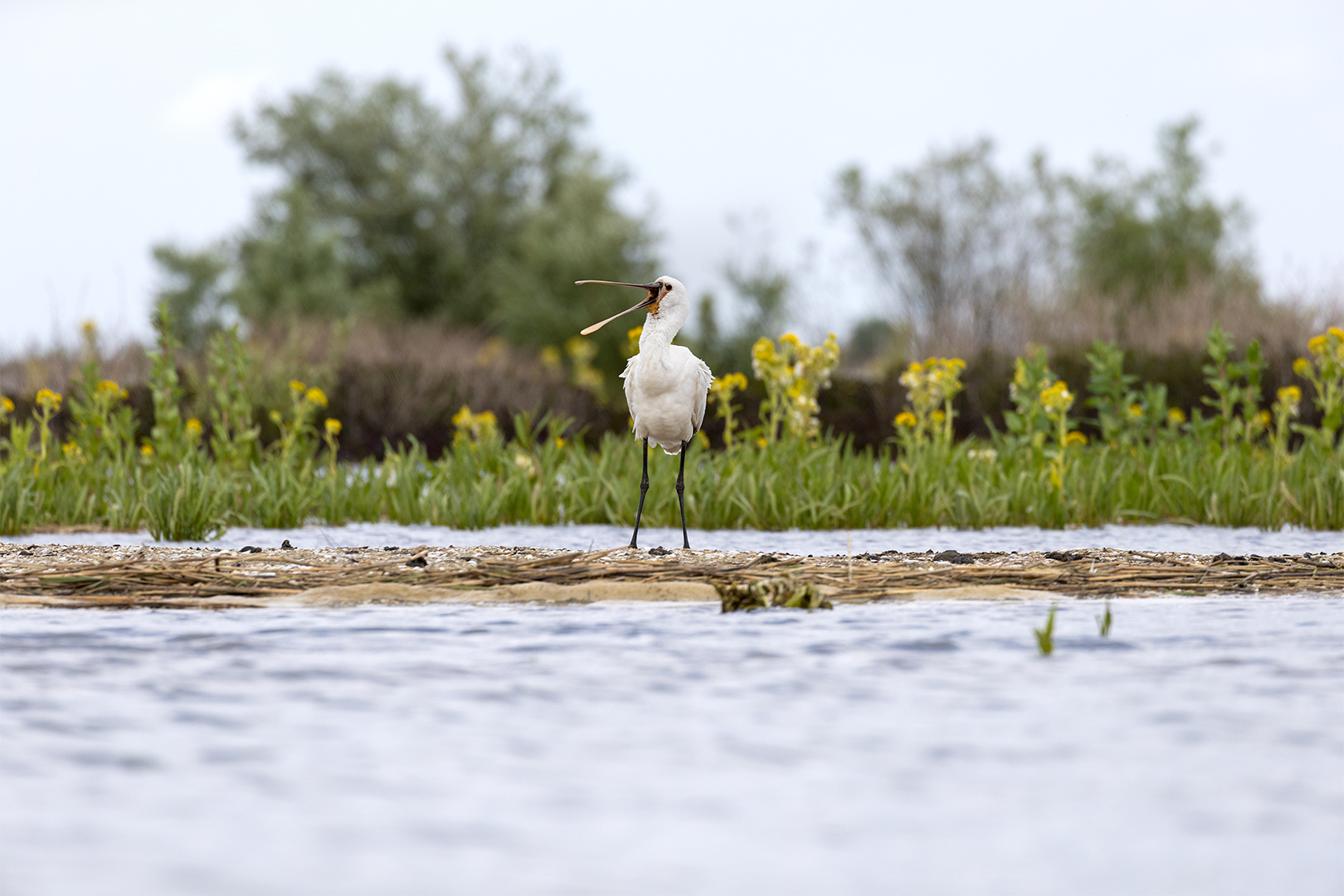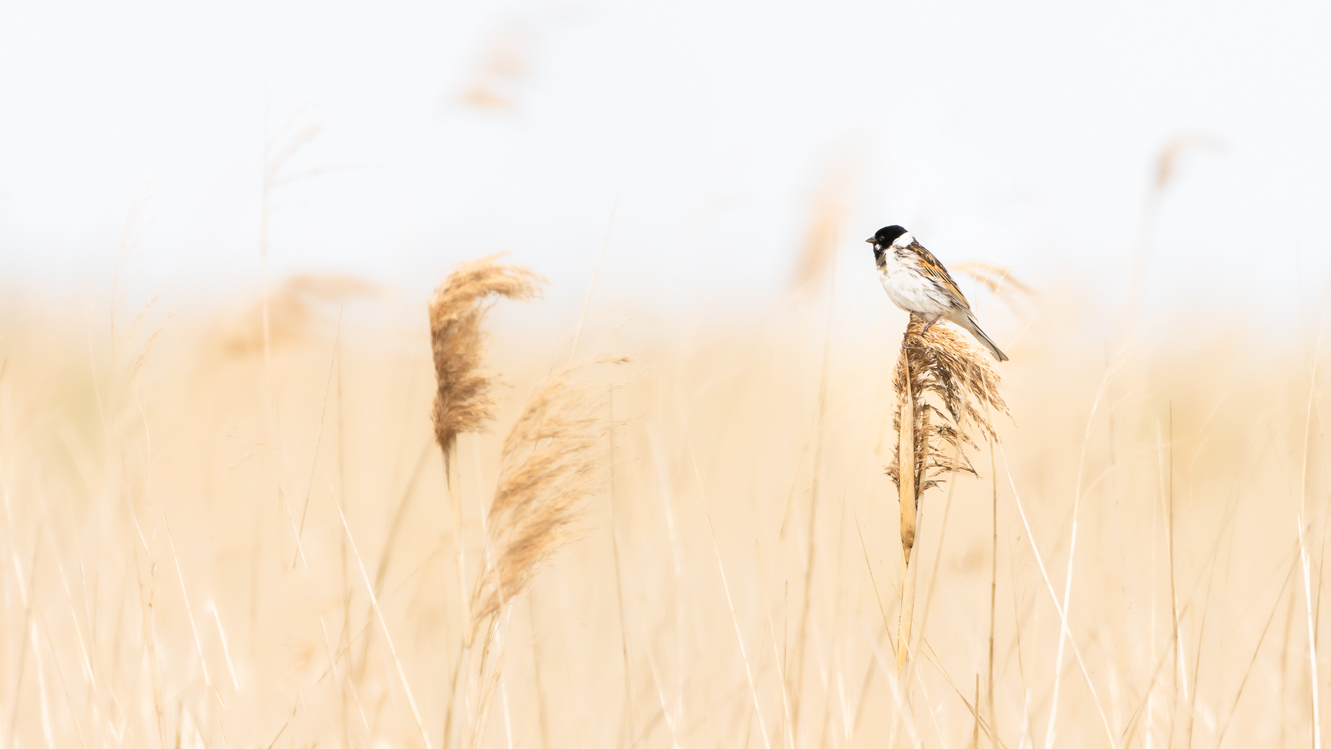 Ik vind het altijd leuk om een stukje van de omgeving mee in beeld te nemen, de rietgors hield even halt en hier maakte ik zo snel mogelijk gebruik van. Met z'n allen wandelden we verder maar natuurlijk zoals je verwacht bleven we vaak kijken, genieten en fotograferen, dit alles met gezellige babbels tussendoor. De kijkhut die onze ogen de kans gaf om over de waterlijn uit te kijken was een mooie afsluiter bij het eiland. Een fris gele bloemenpracht in de achtergrond versterkten de sfeer terwijl we genoten van de mooie fotokansen.