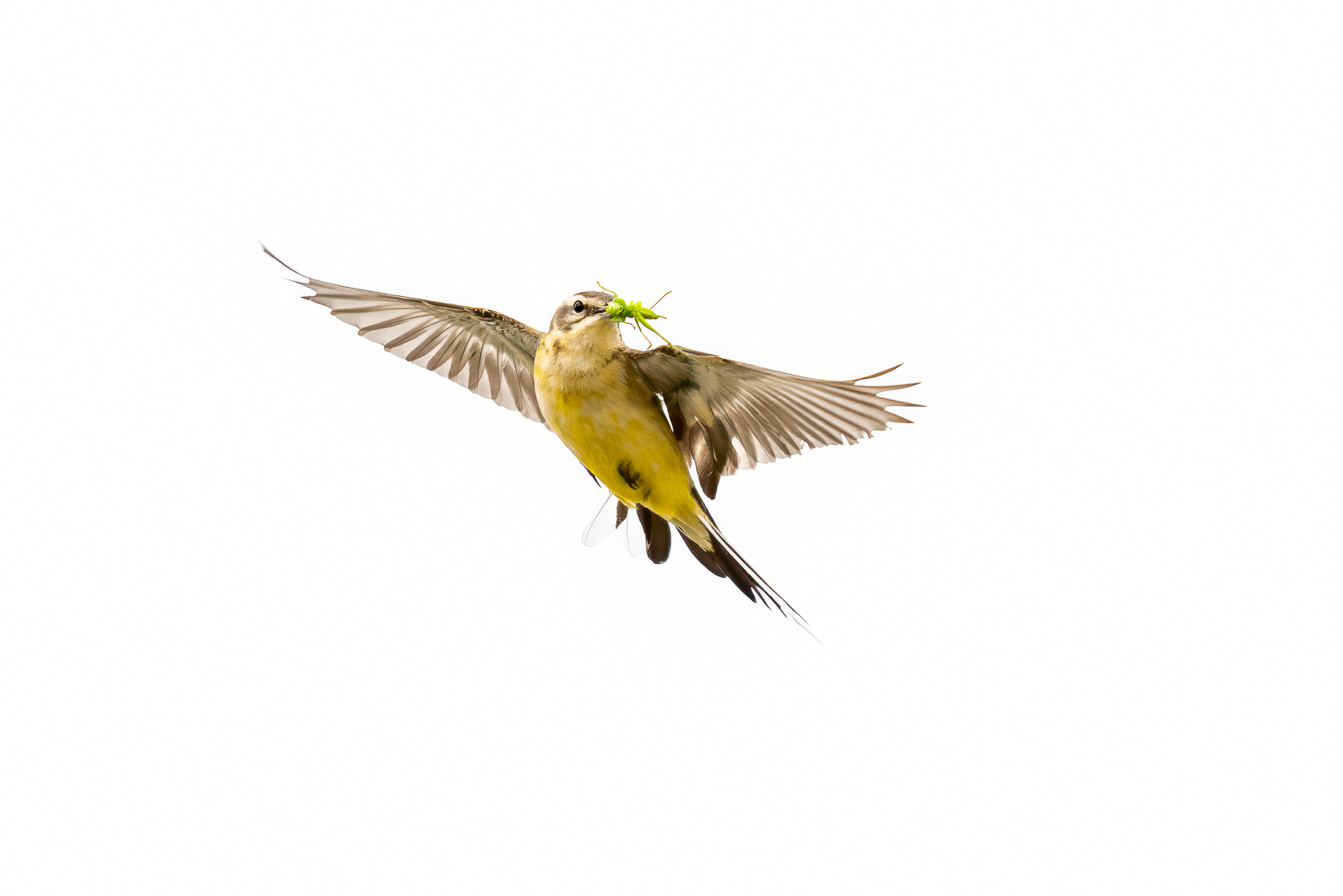 Gele Kwikstaart met Sabelsprinkhaan - Loes Belovics