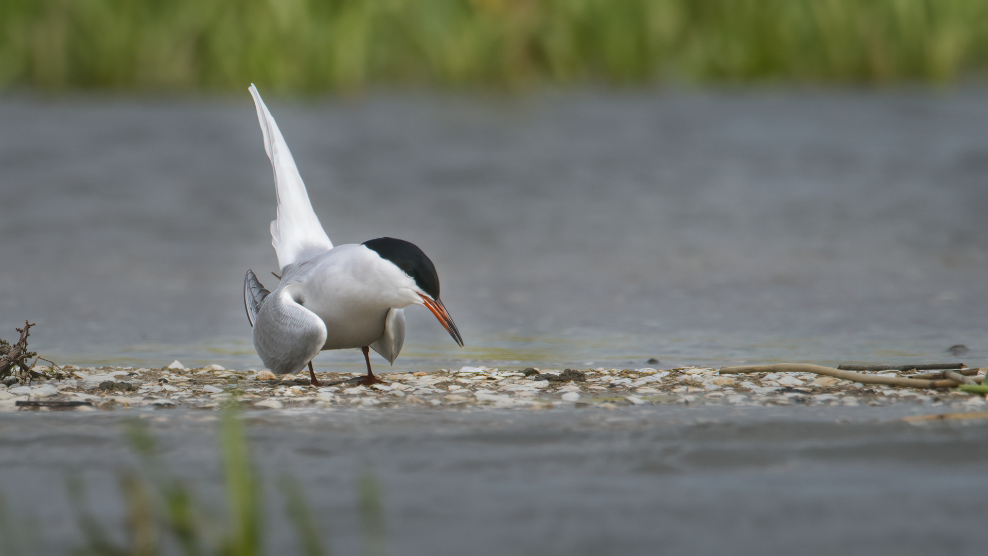 Deze twee foto’s zijn genomen vanuit de fotohut op de Markerwadden, waar je vanaf het wateroppervlak kluten, sternen en een lepelaar kon observeren. Dat gaf een mooi laag standpunt voor de foto’s. Het was dan ook dringen geblazen met alle telelenzen naast elkaar.