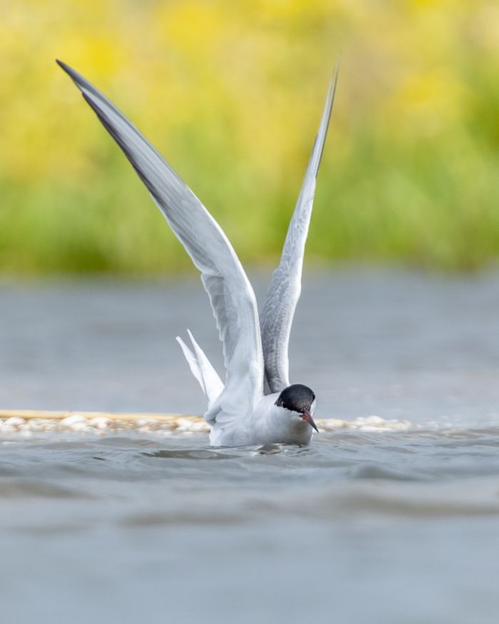 Ik had het Paasweekend op de Marker Wadden doorgebracht en vond het er echt prachtig, heerlijk dus om er wéér voet aan wal te zetten, en nu, ruim een maand later, was het er nóg mooier! Ik werd helemaal blij van het vrolijke geel van de moerasandijvie en dan al die vogels, wat een feestje! Ik kreeg mijn eerste Regenwulp voor de lens en ben een hele poos bezig geweest om te proberen een Gele Kwikstaart in zijn voedselvlucht in beeld te vangen. Dat viel niet mee, wat zijn ze snel en onvoorspelbaar. Veel halve vogels, lege luchten en onscherpe vogels. Pas thuis zag ik dat ik een paar keer raak geschoten had!